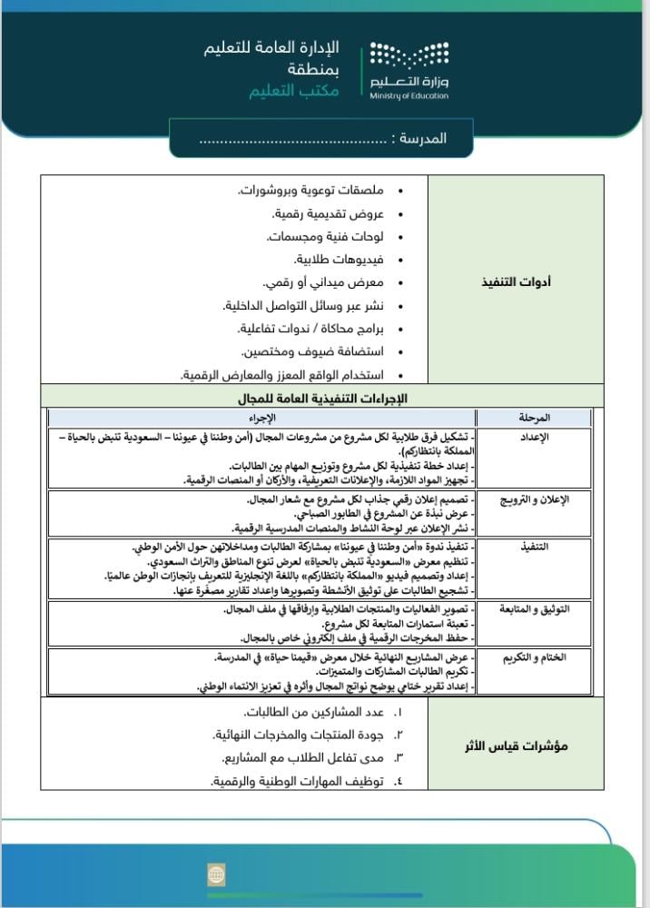 - منسق بصيغة رسمية لملفات النشاط الطلابي.