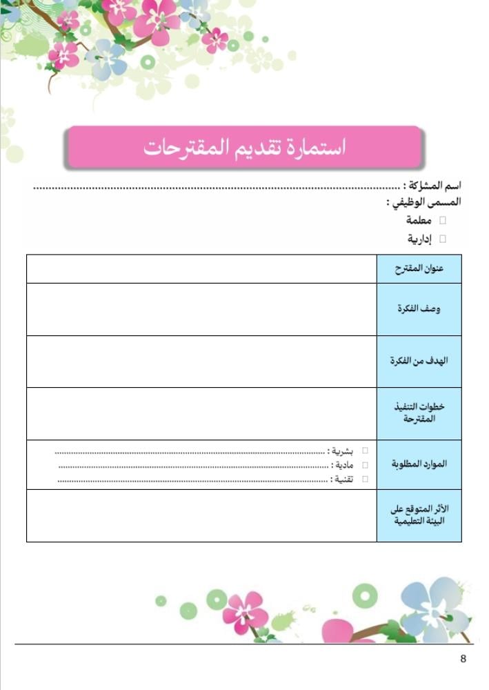 - استمارة تقديم المقترحات.