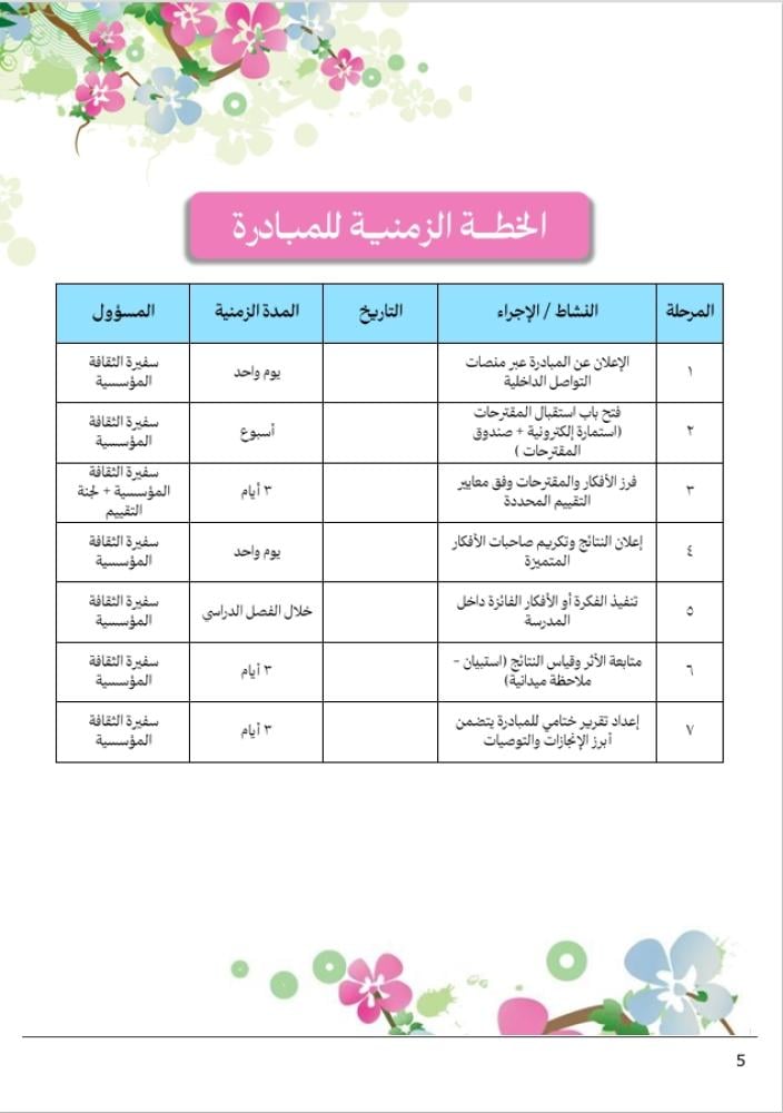 💡 ملف مثالي للمساعد الإداري أو سفيرة الثقافة المؤسسية أو أي مسؤولـة عن تطوير المبادرات المدرسية .
