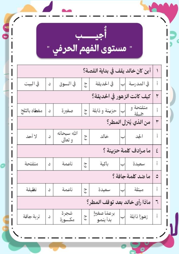 ✅ أسئلة فهم حرفي