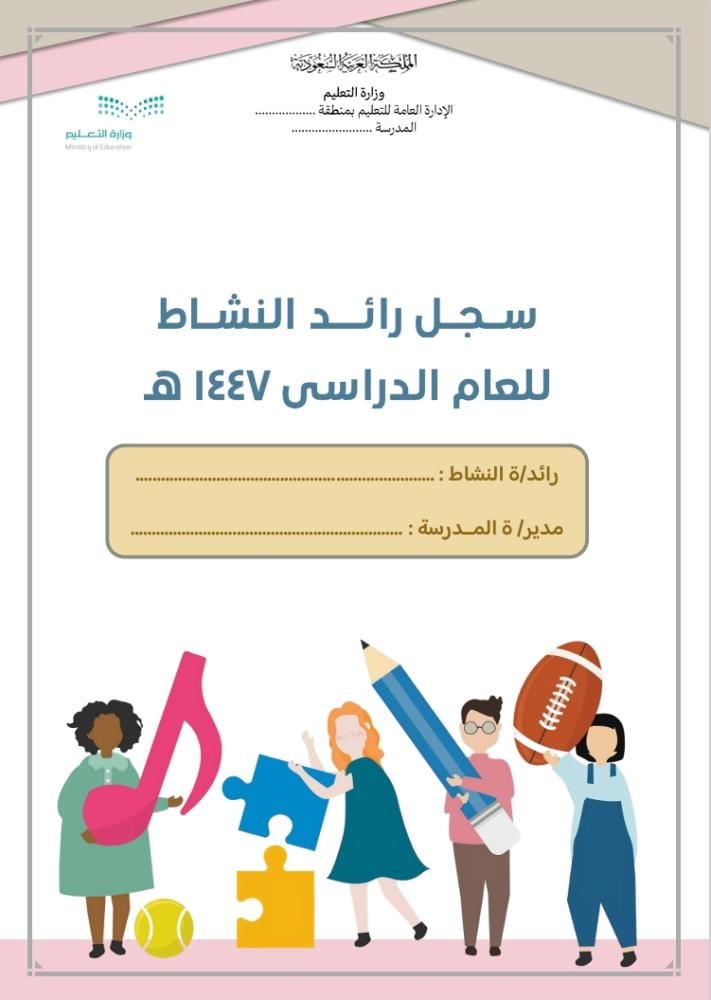 ملف متكامل صُمم ليساعد رائد/ة النشاط على تنظيم وتوثيق الأنشطة الطلابية بالمدرسة بطريقة احترافية ومنظمة.