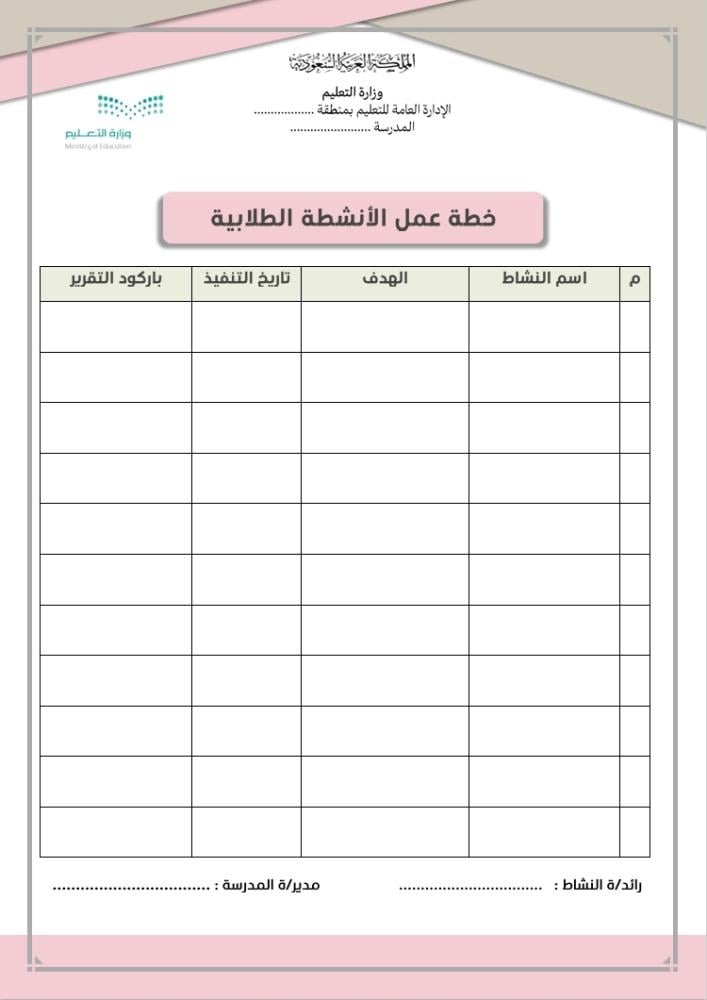 - نموذج مفرغ لخطة عمل سنوية/فصلية للأنشطة لتعبئته وفق احتياجات المدرسة.