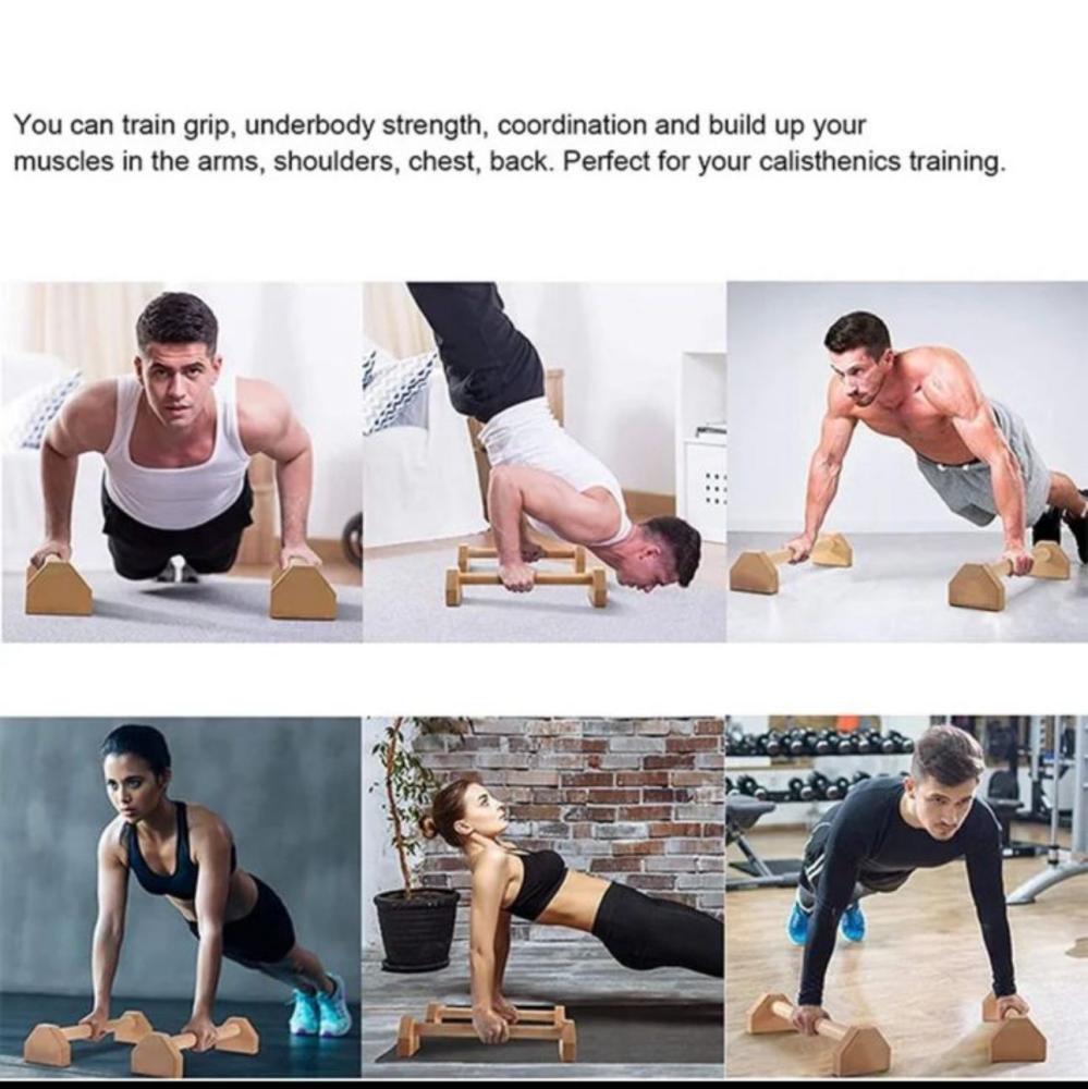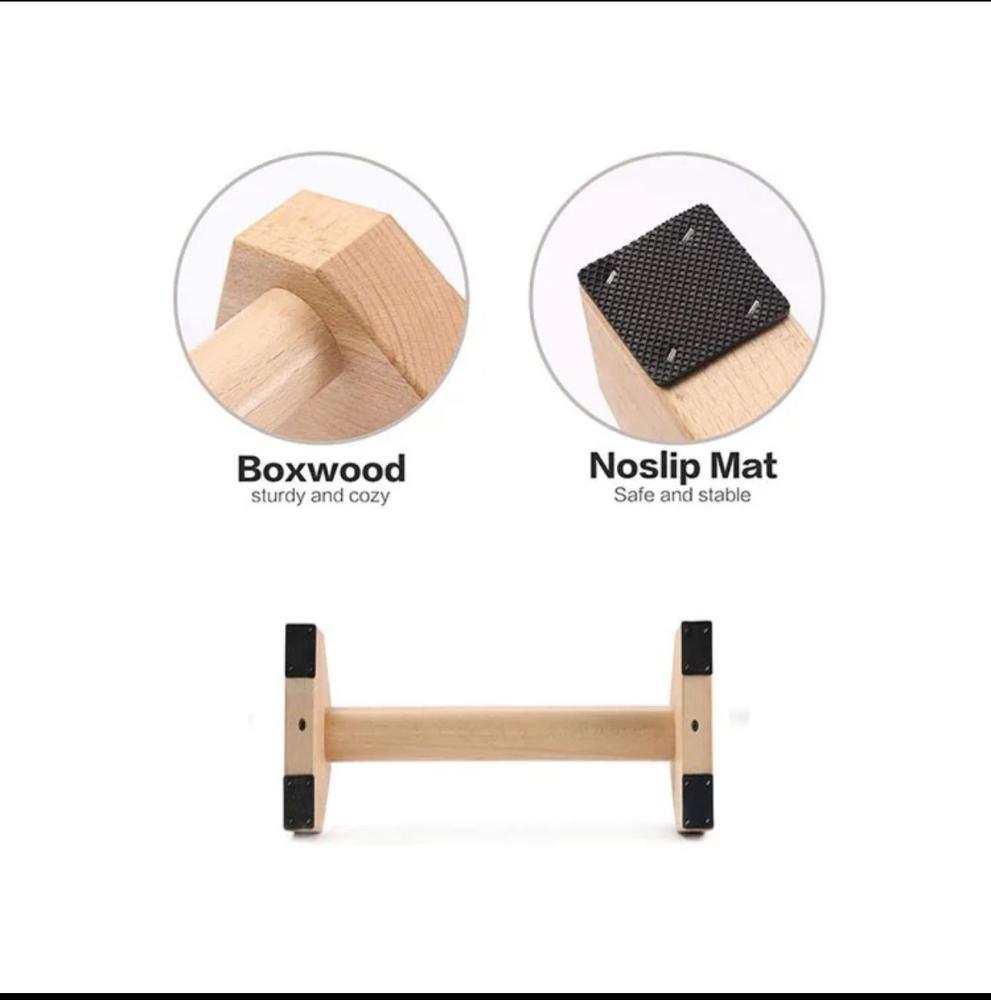 - مواد عالية الجودة}: مصنوعة من خشب الزان عالي الجودة، مصقول وناعم ومتين. مثل قضبان تدريب الجمباز، قوية ومتينة ومريحة. قاعدة ايفا غير قابلة للانزلاق تجعلها آمنة ومستقرة.