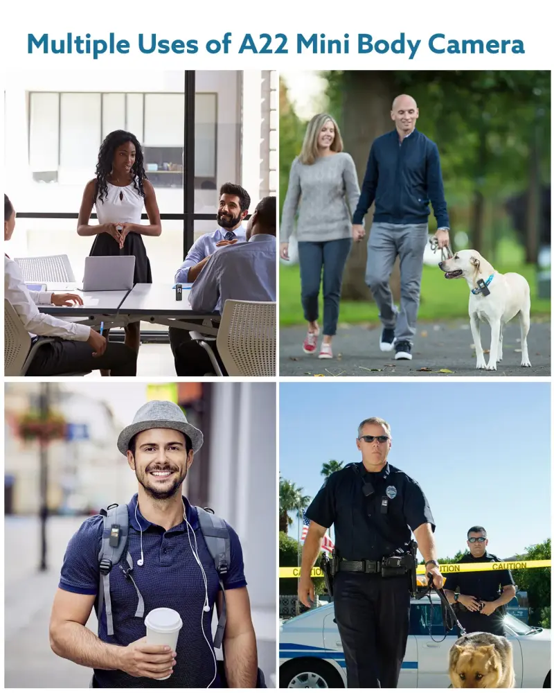 - Fhd P/30fps تسجيل الفيديو و 40M بكسل Photo ميزات تسجيل الفيديو P وصور 40M ، يمكن للكاميرا توفير لقطات واضحة في الحياة اليومية ، كما يمكن أن تعمل كاميرا الجسم مع تسجيل في الليل ، 4 صوت غير مرئي أضواء الأشعة تحت الحمراء تساعد على التسجيل في البيئة المظلمة.دعم التقاط الصور عند التسجيل ، ودعم التسجيل غير المرئي والصامت. وظيفة تسجيل حلقة معتمدة.