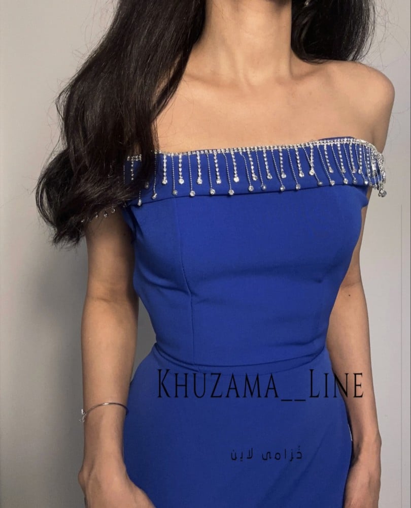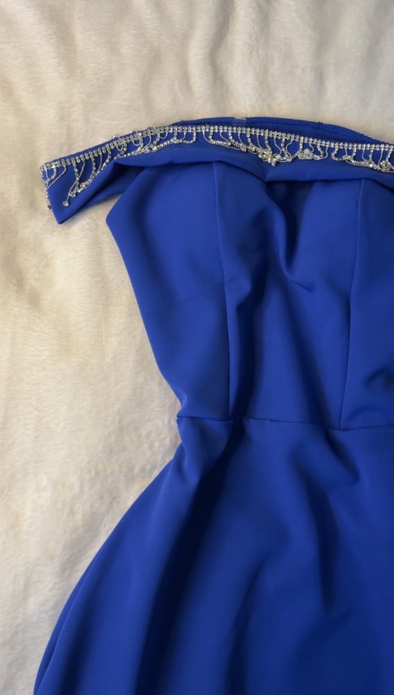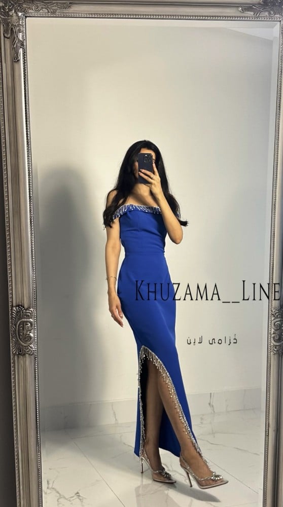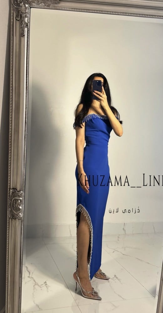 فستان ازرق قماش باربي سيراميك ، مع شك بالصدر و الظهر وبألاسفل ❤️
