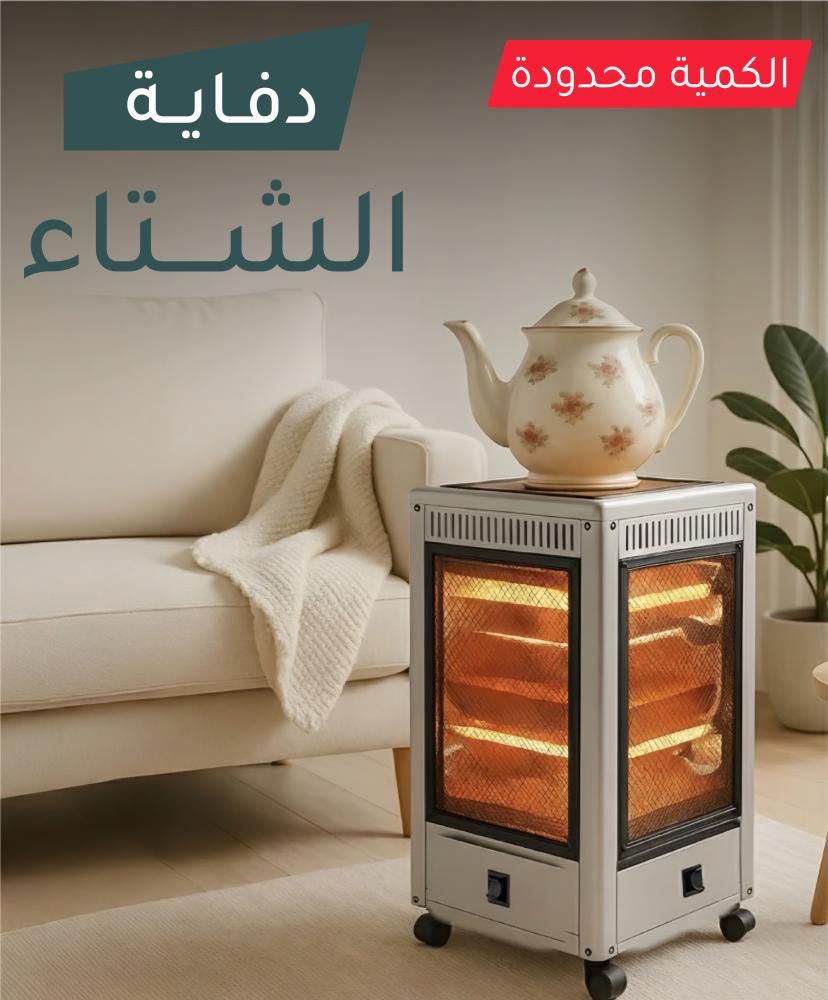 استمتع بأجواء دافئة ومريحة مع دفاية سخان بخمسة أوجه، التي تجمع بين التدفئة الفعالة وسخان علوي للمشروبات، لتمنحك تجربة دافئة متكاملة في بيتك أو مكتبك. بتصميم أنيق مزود بعجلات لسهولة التنقل ومزايا أمان متطورة تضمن استخدامًا مريحًا وآمنًا طوال الشتاء.