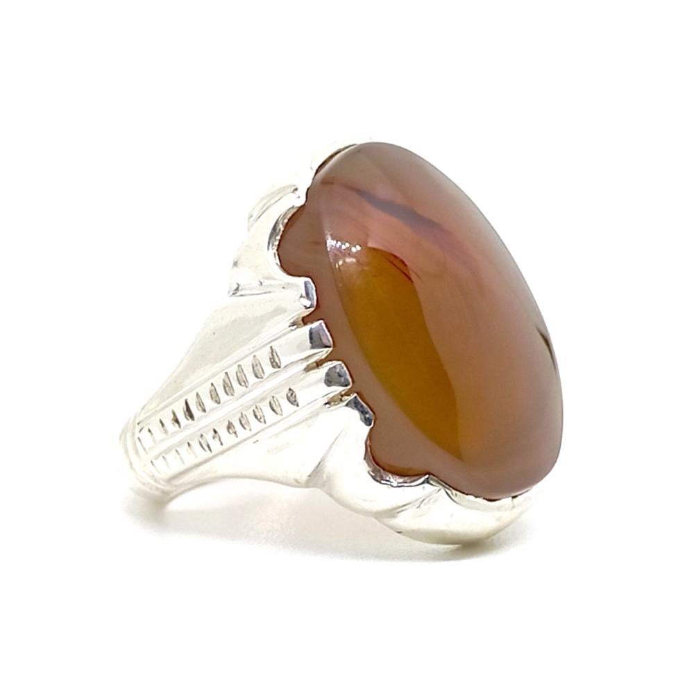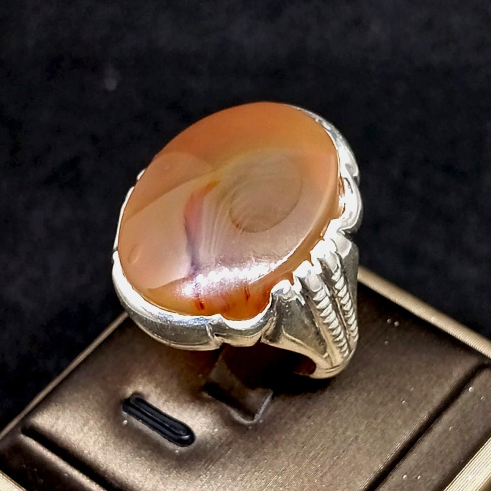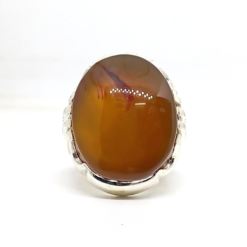 خاتم عقيق يماني طبيعي (Agate) صياغة مميزة فضة عيار (925)