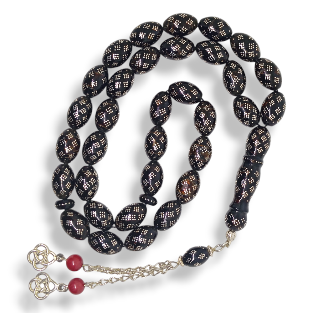سبحة يسر طبيعي 33 خرزة مقاس 16 مم مطعمة بالفضة