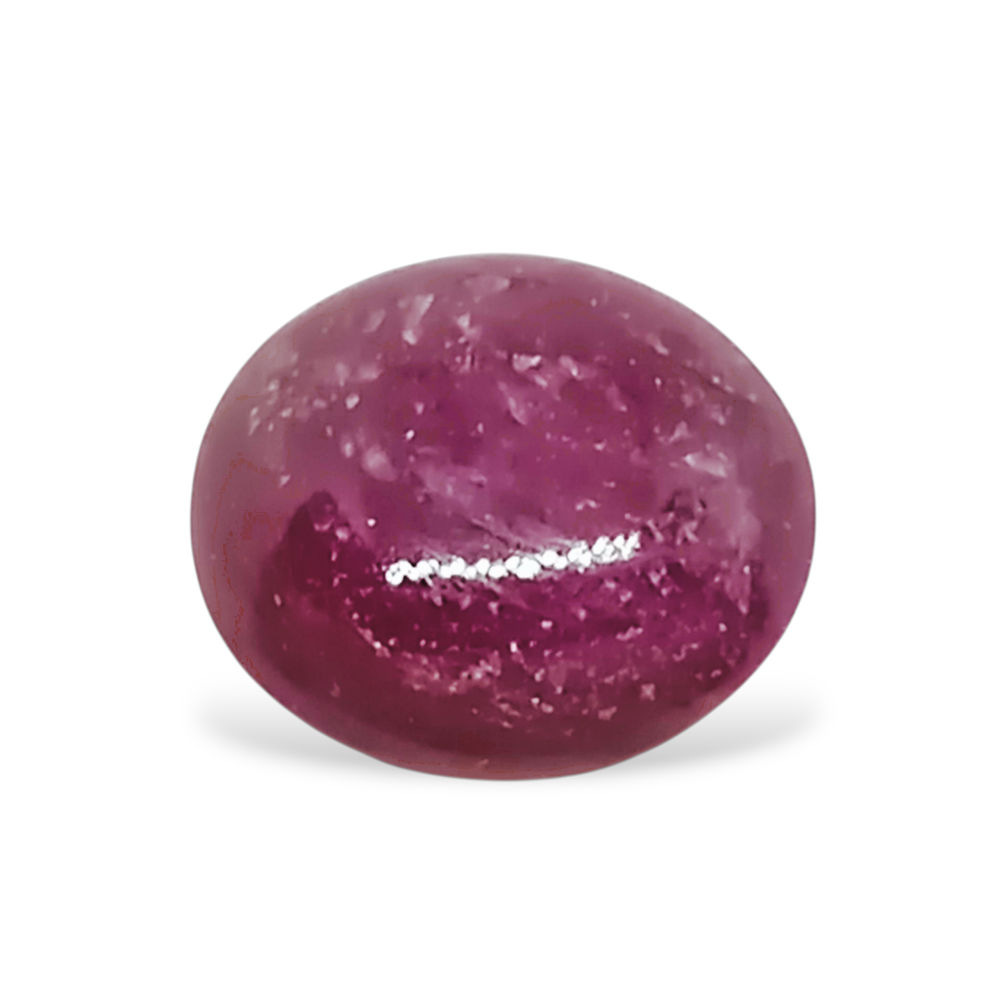 حجر ياقوت افريقي (RUBY) طبيعي 100% غير معالج لون احمر ارجواني قص كابشيون.ابعاد الحجر : (12 × 11 × 5.6) مموزن الحجر ؛ ( 7.47 ) قيراطقص الحجر ؛ بيضاوي