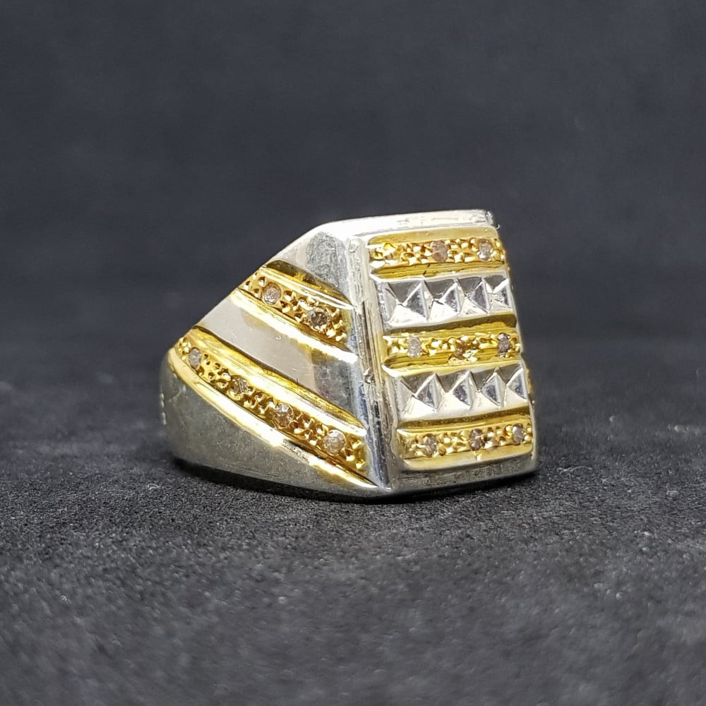 خاتم الماس طبيعي ( Diamond ) مرصع ب ( 21 ) قطعة من الالماس صياغة يدوية فضة عيار (925) مع شهادة الصائغ