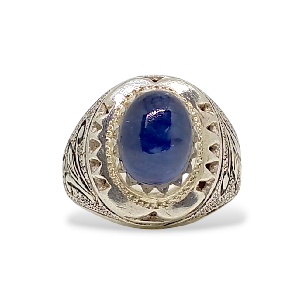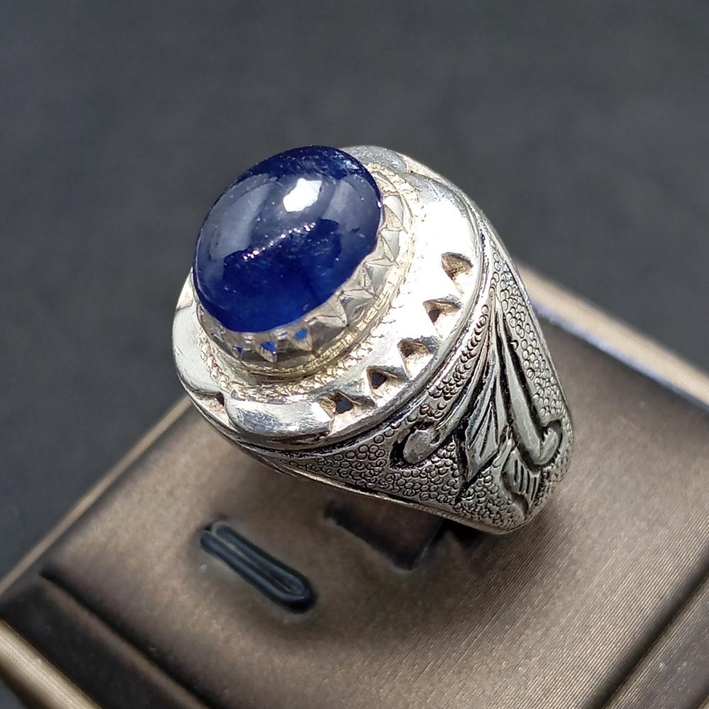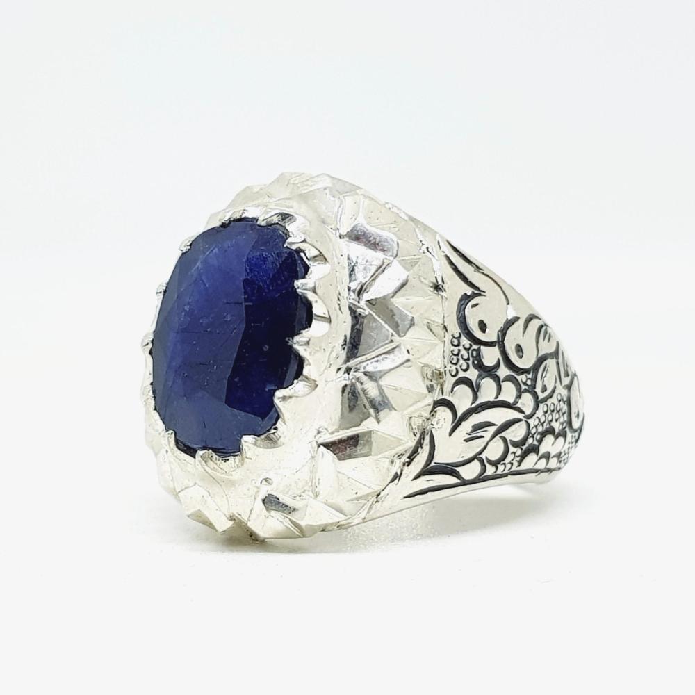 خاتم زفير ازرق طبيعي ( Sapphire ) صياغة يدوية مميزة فضة عيار 925