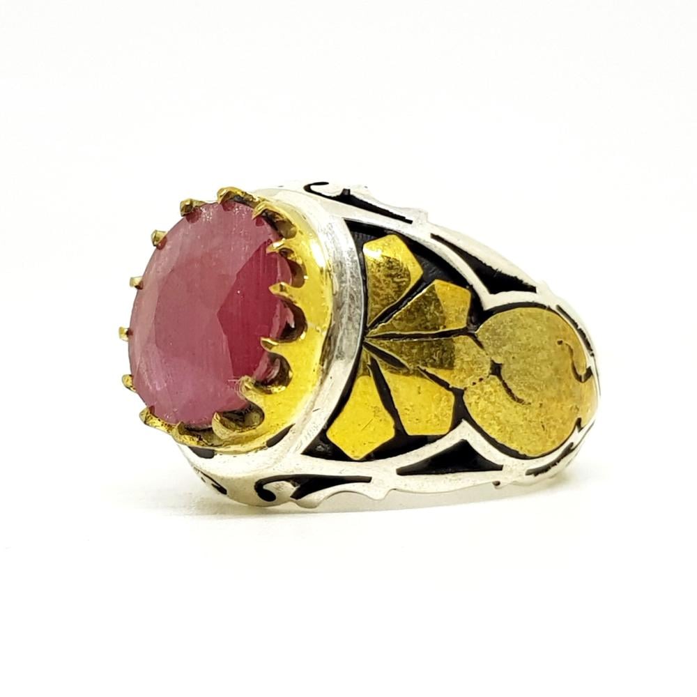 خاتم ياقوت طبيعي (Ruby) صياغة يدوية مميزة فضة عيار 925
