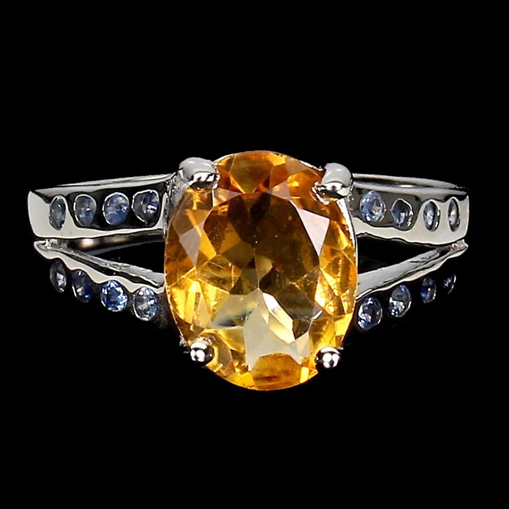خاتم سيترين طبيعي ( Citrine ) صياغة نسائية فضة استرليني عيار (925) مرصع بالزفير