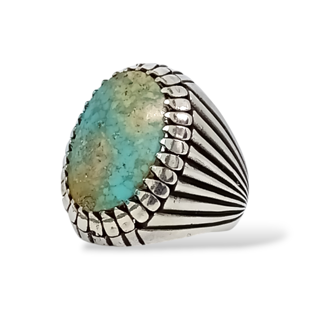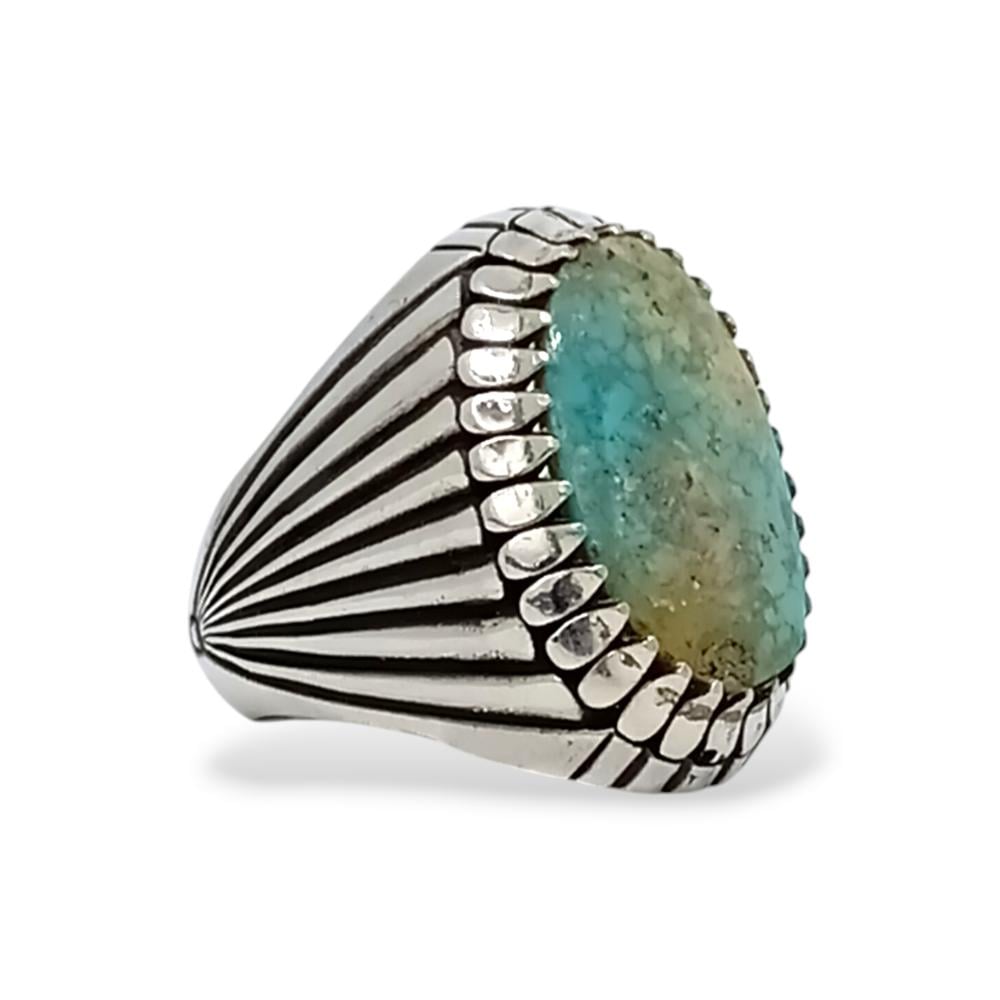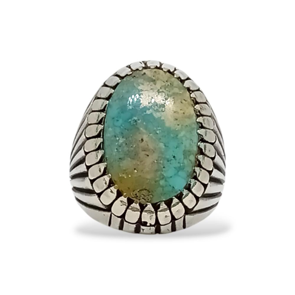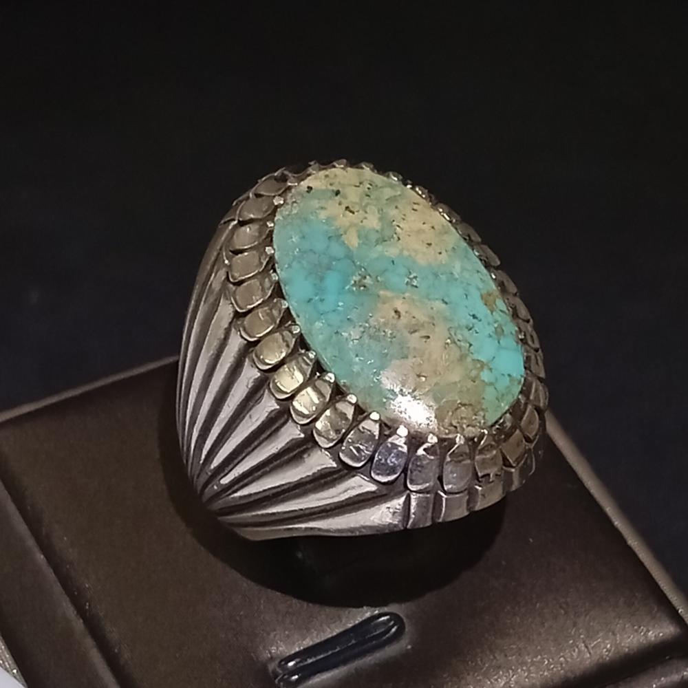 خاتم فيروز نيشابوري طبيعي (Turquoise) صياغة زنجان يدوية مميزة فضة ثقيلة عيار 925