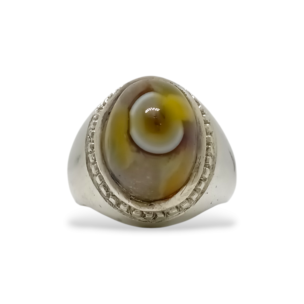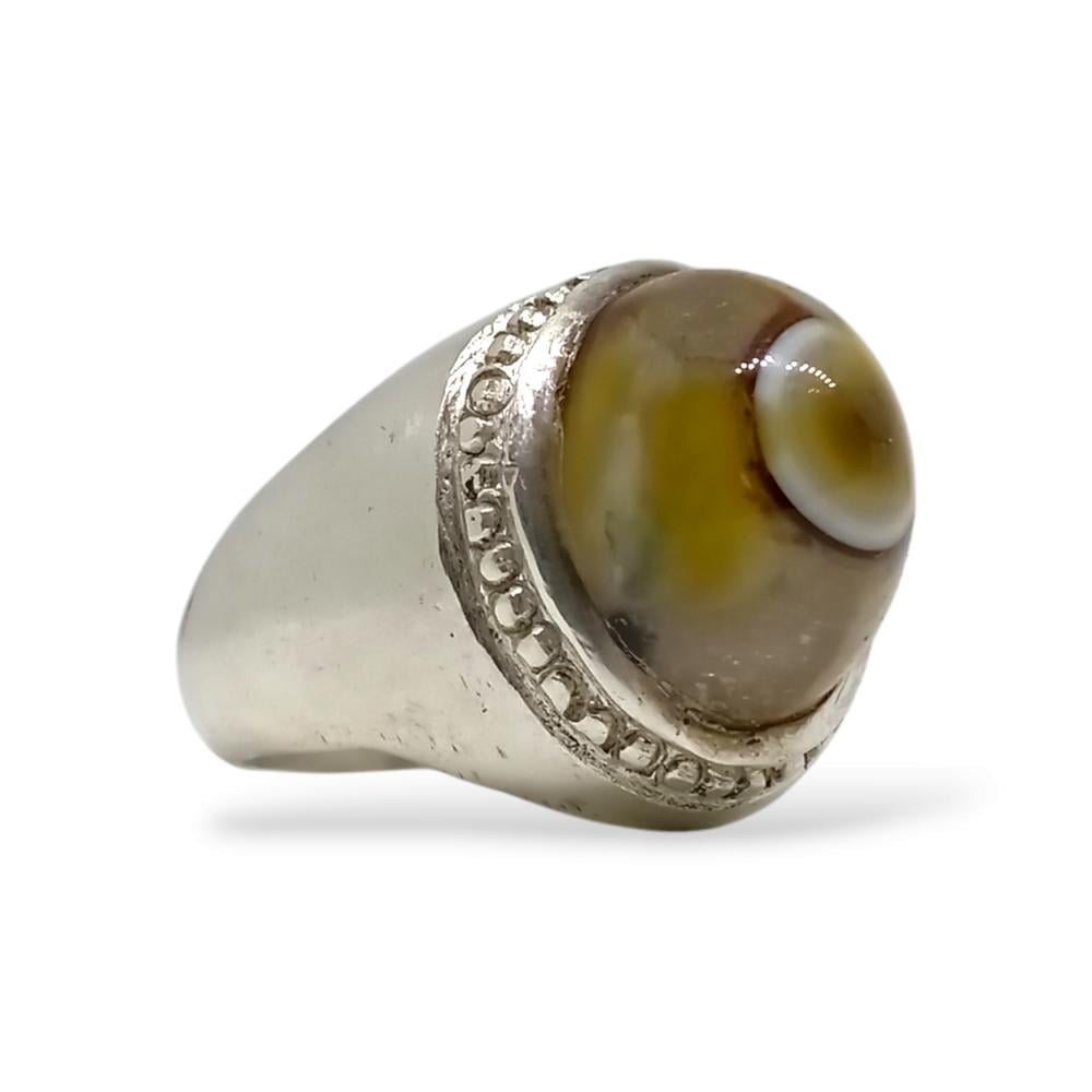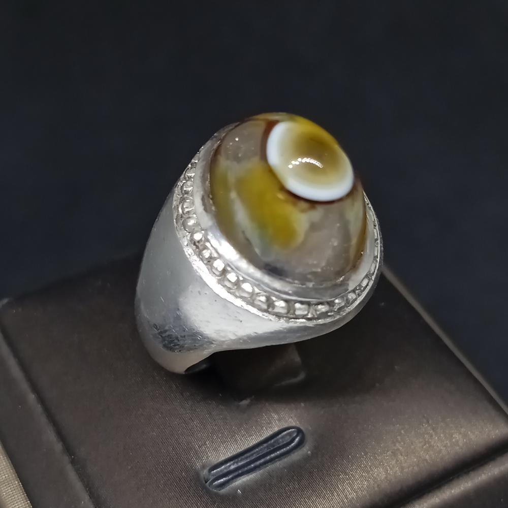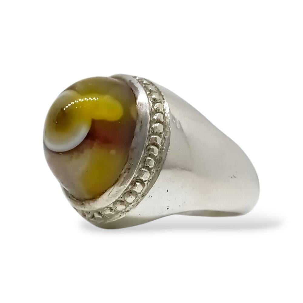 خاتم بحجر عقيق سليماني طبيعي (Agate) صياغة يدوية مميزة فضة عيار 925