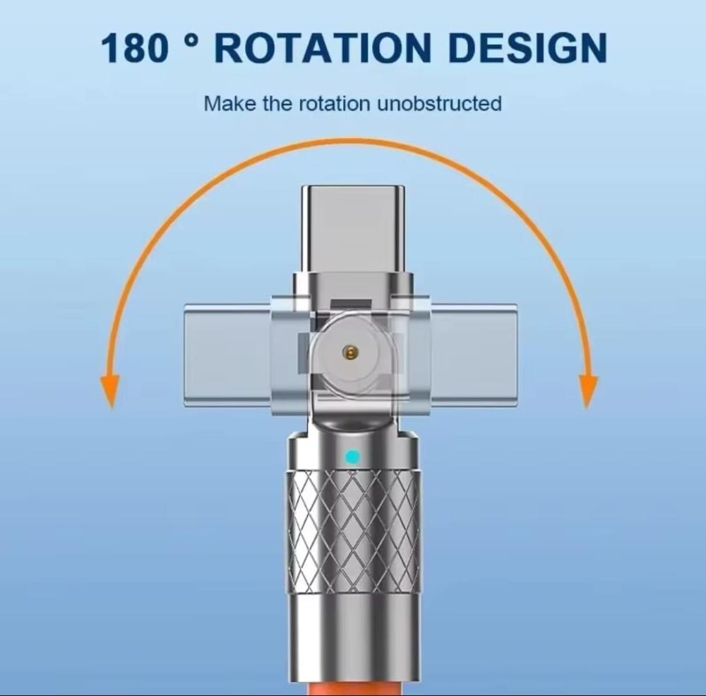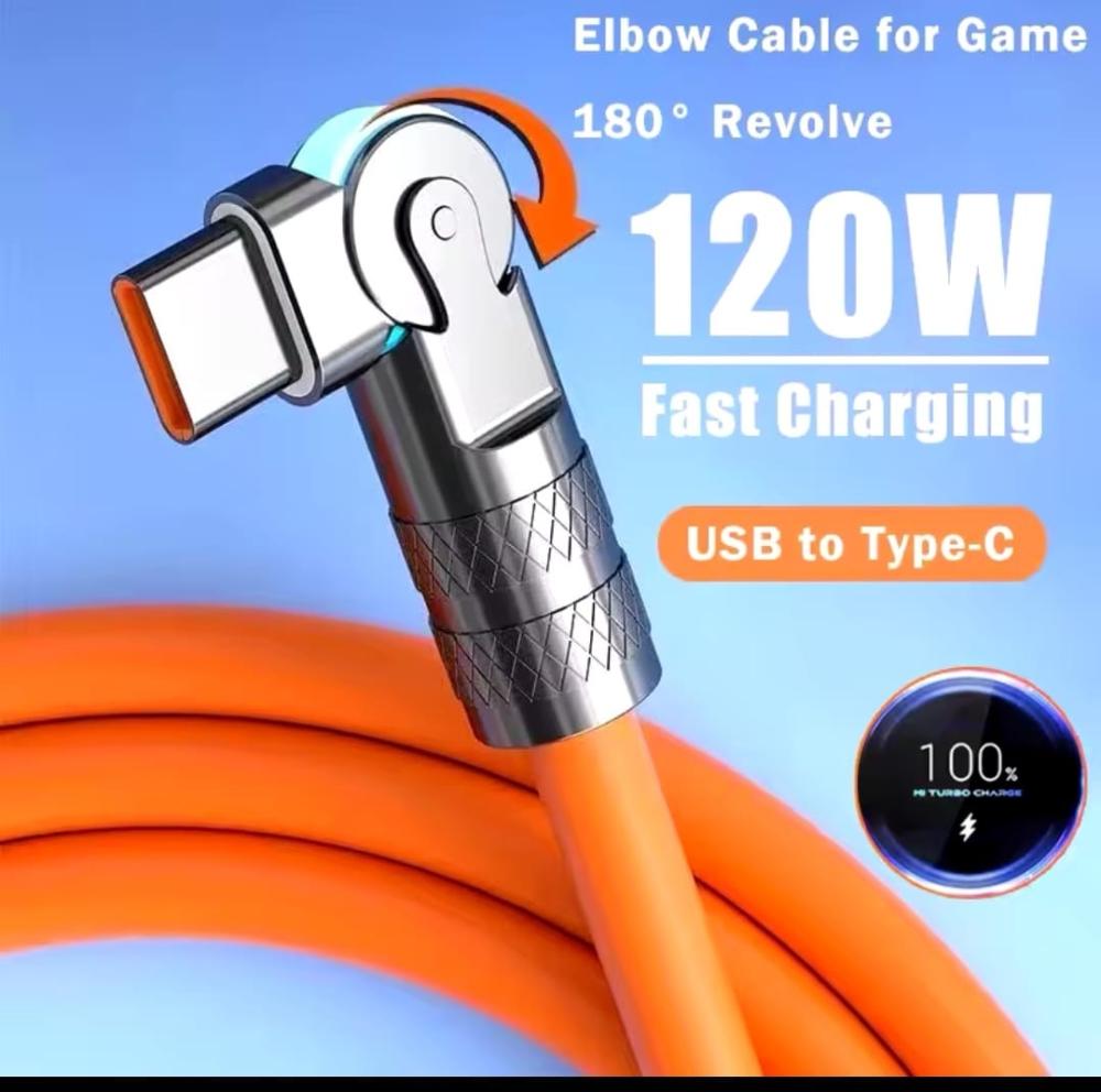 120 واط 6A شحن سريع Usb نوع C كابل بيانات 180 درجة الدورية الألعاب الكوع كابل ل Xiaomi شاحن الهاتف المحمول كابل بيانات Usb