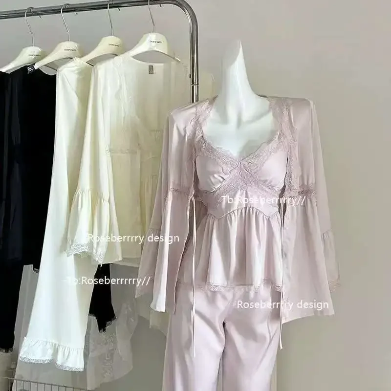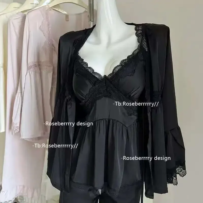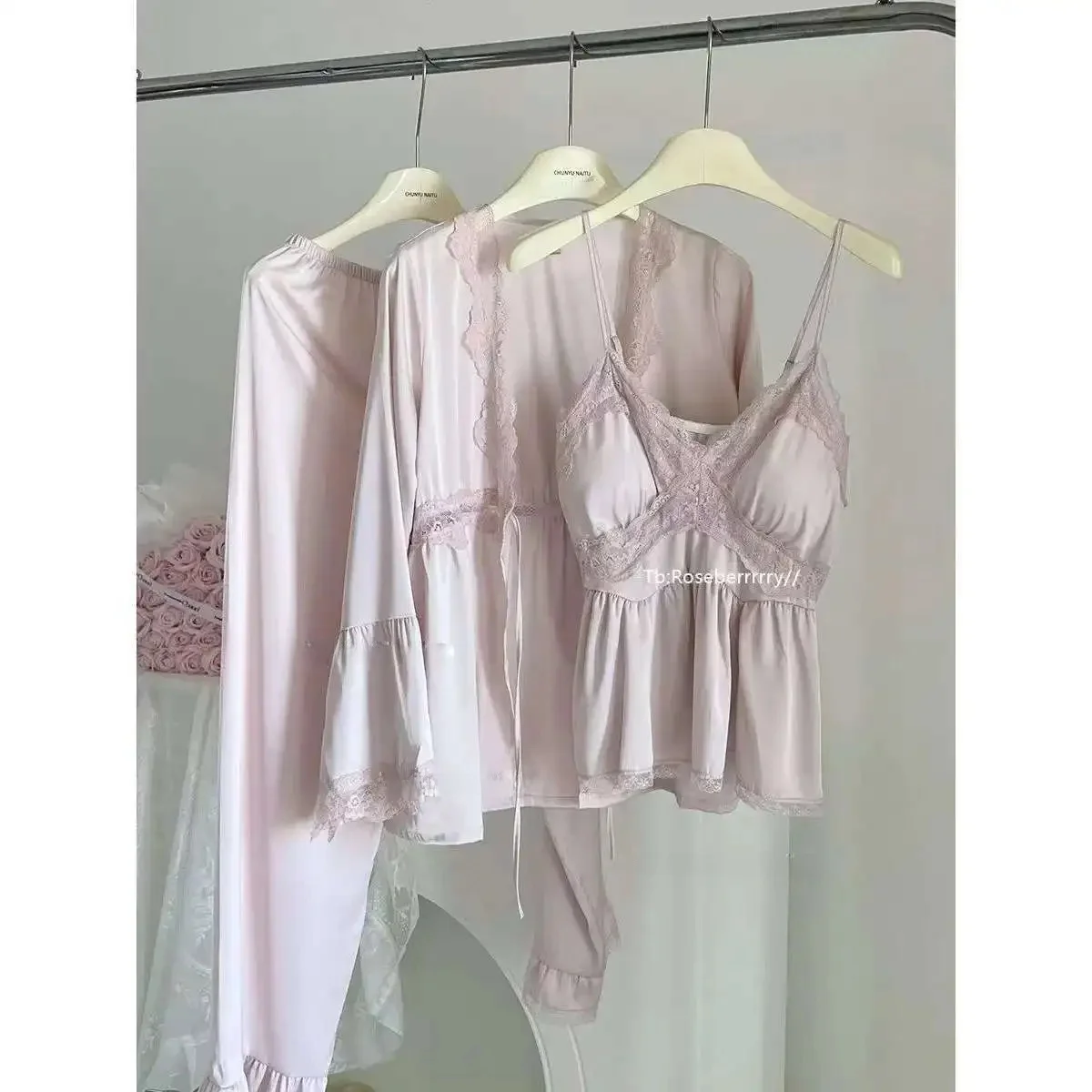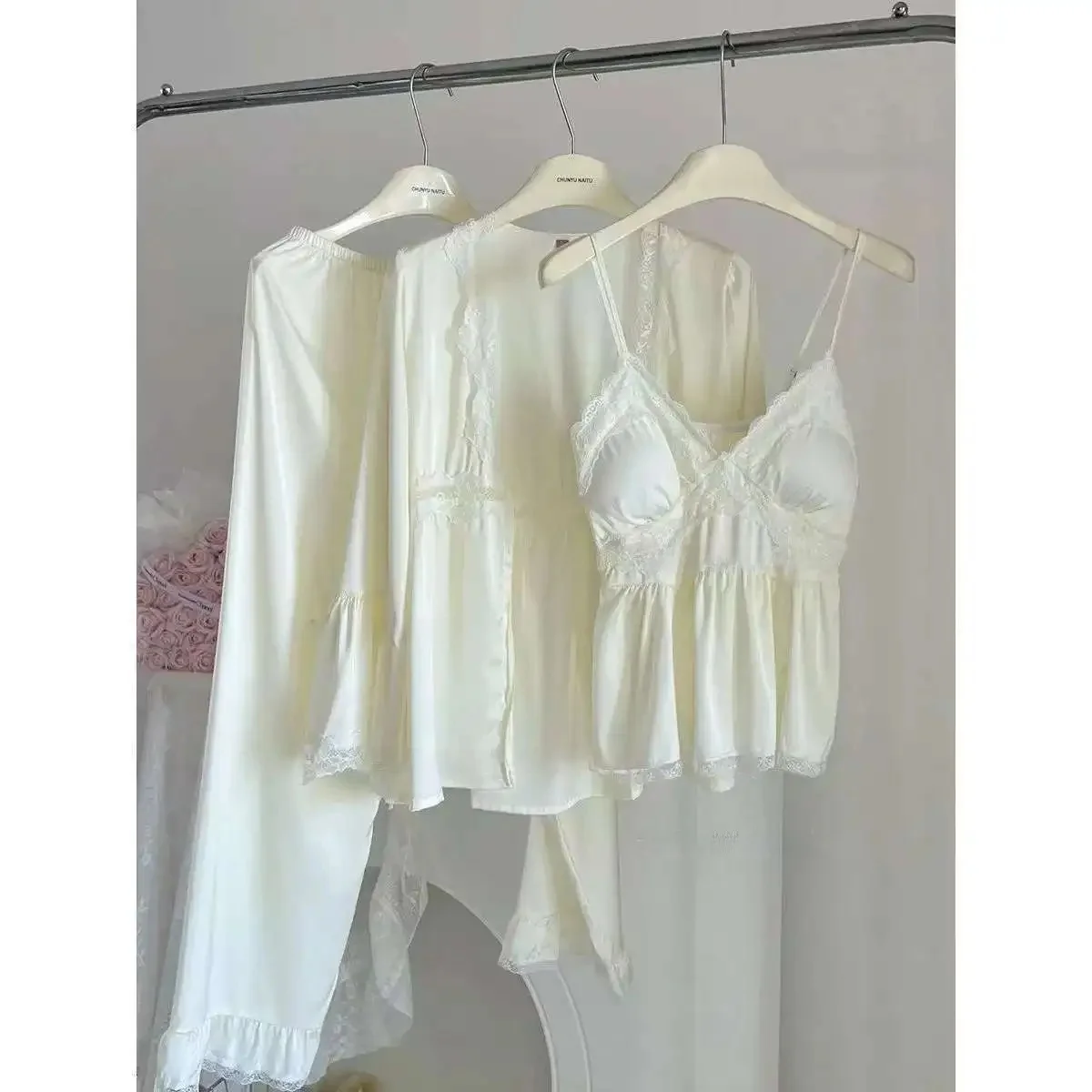بجامه من الحريم بأطراف دانتيل ، 3قطع