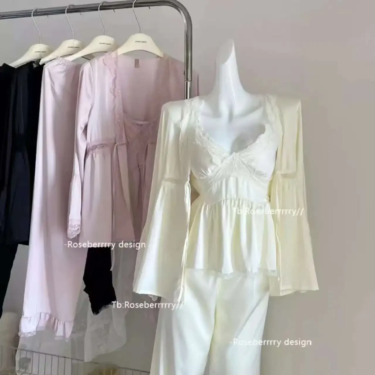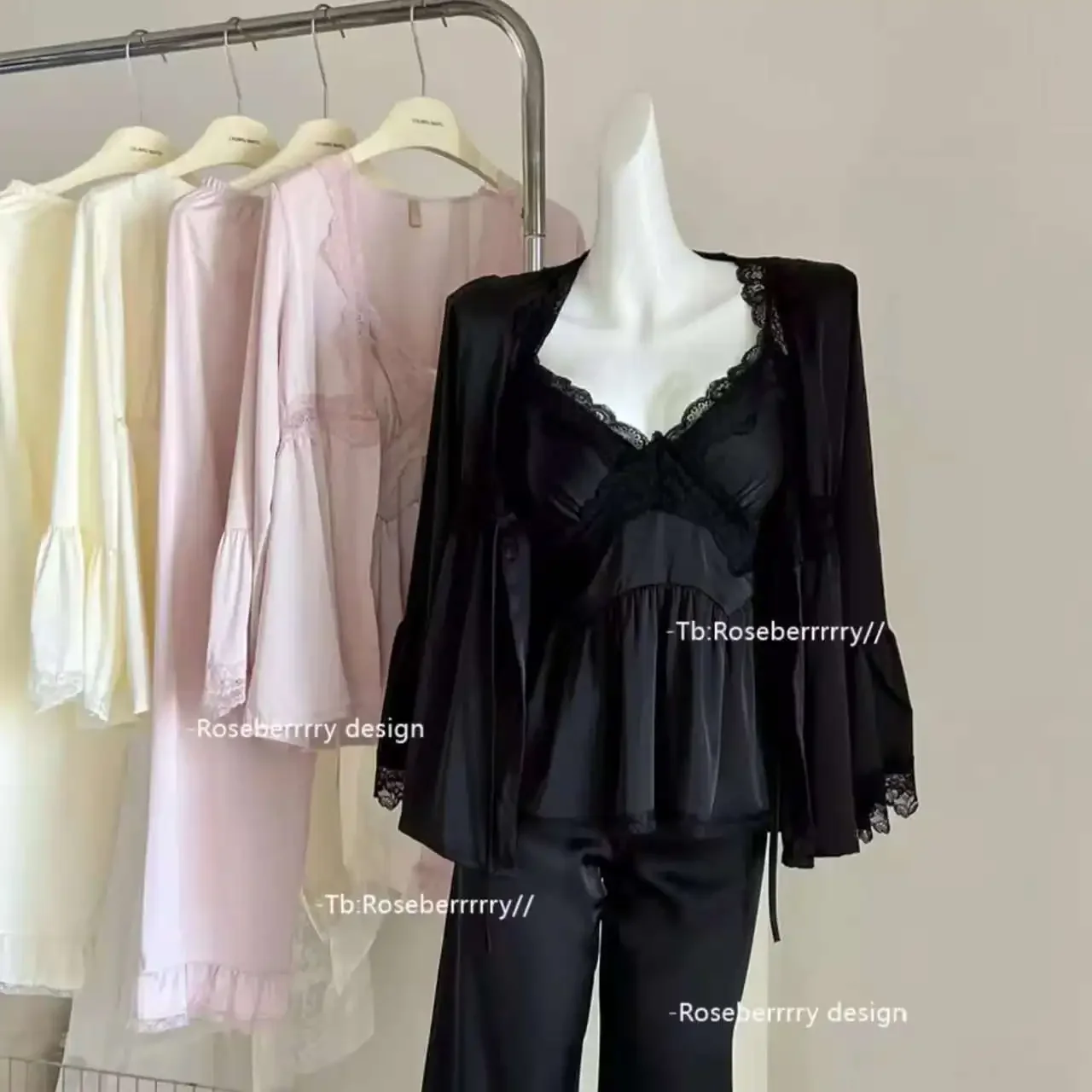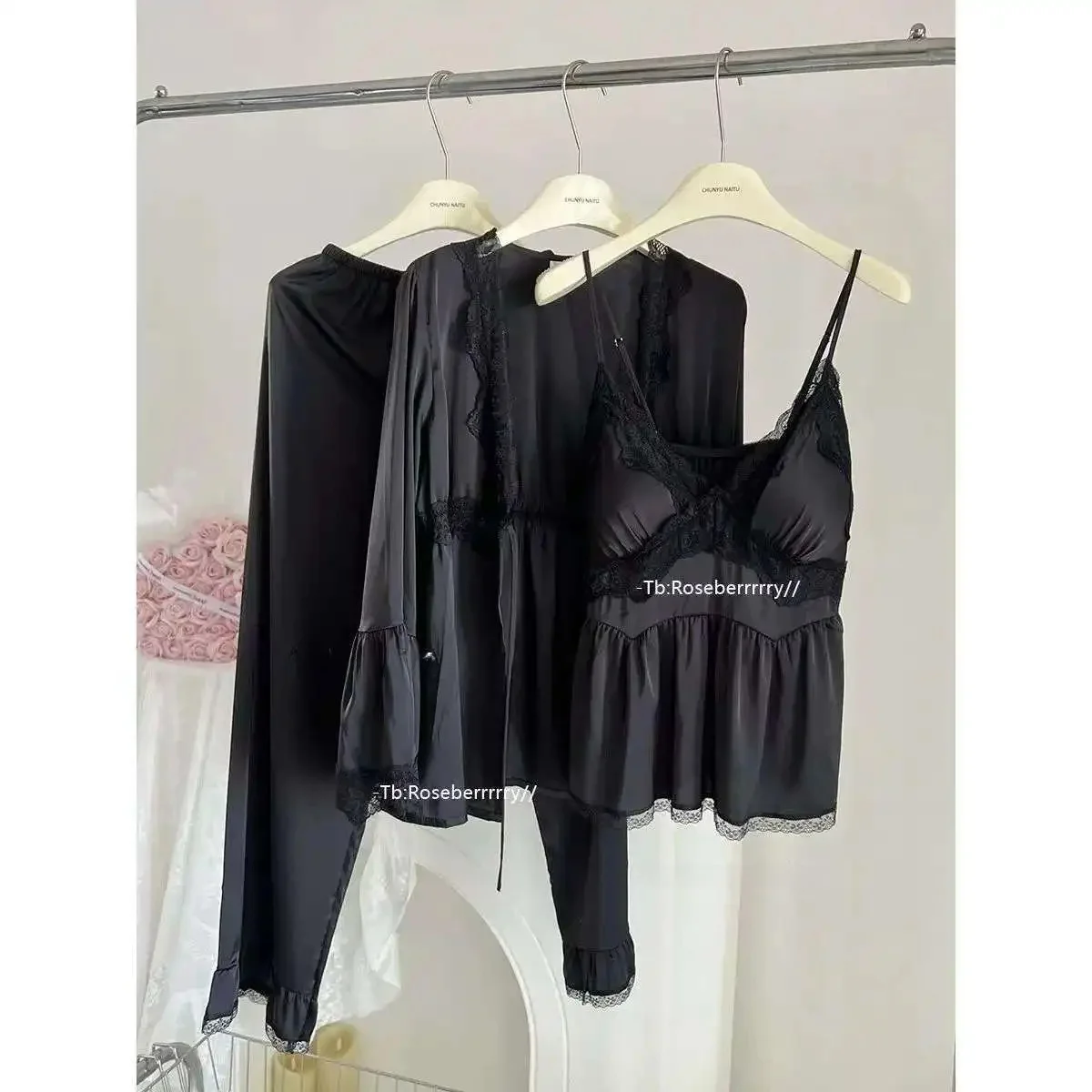 بجامه من الحريم بأطراف دانتيل ، 3قطع