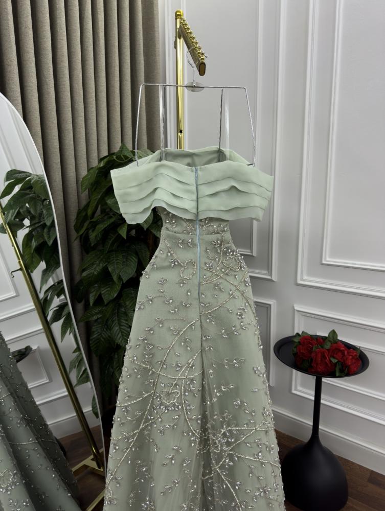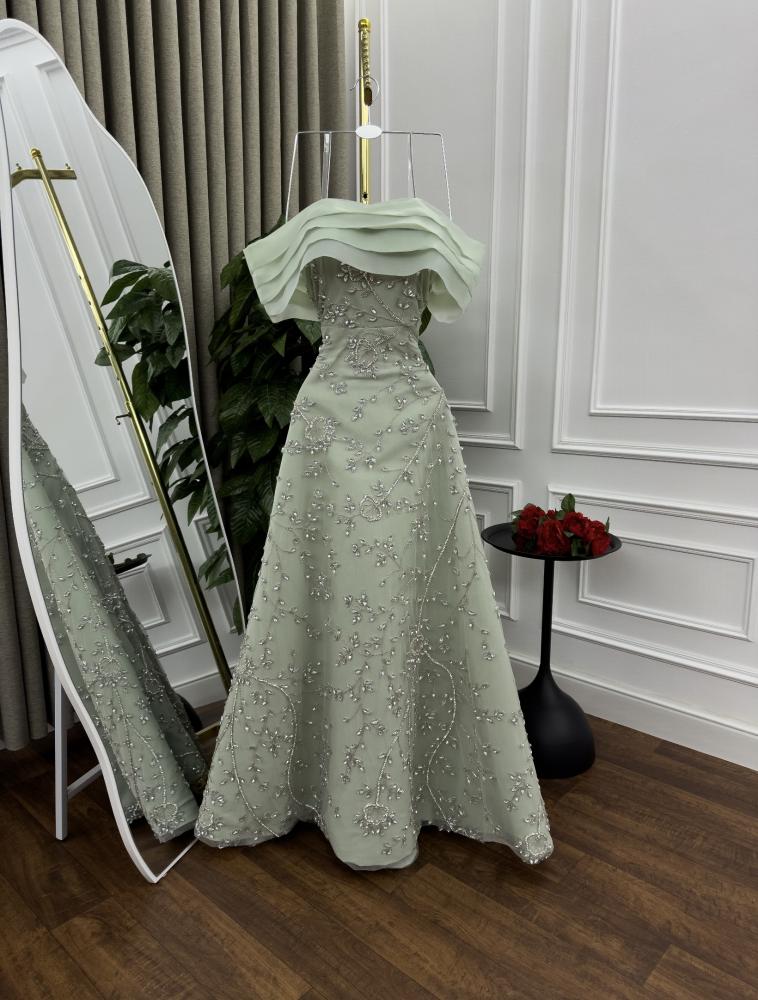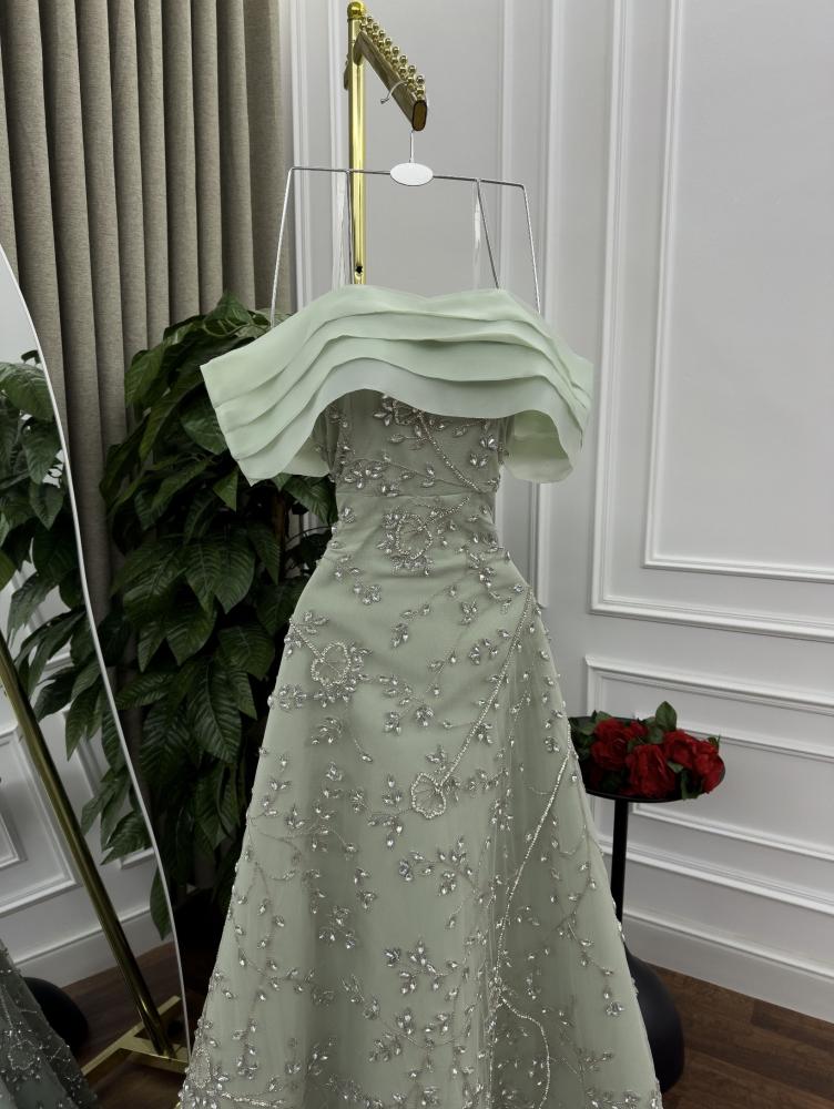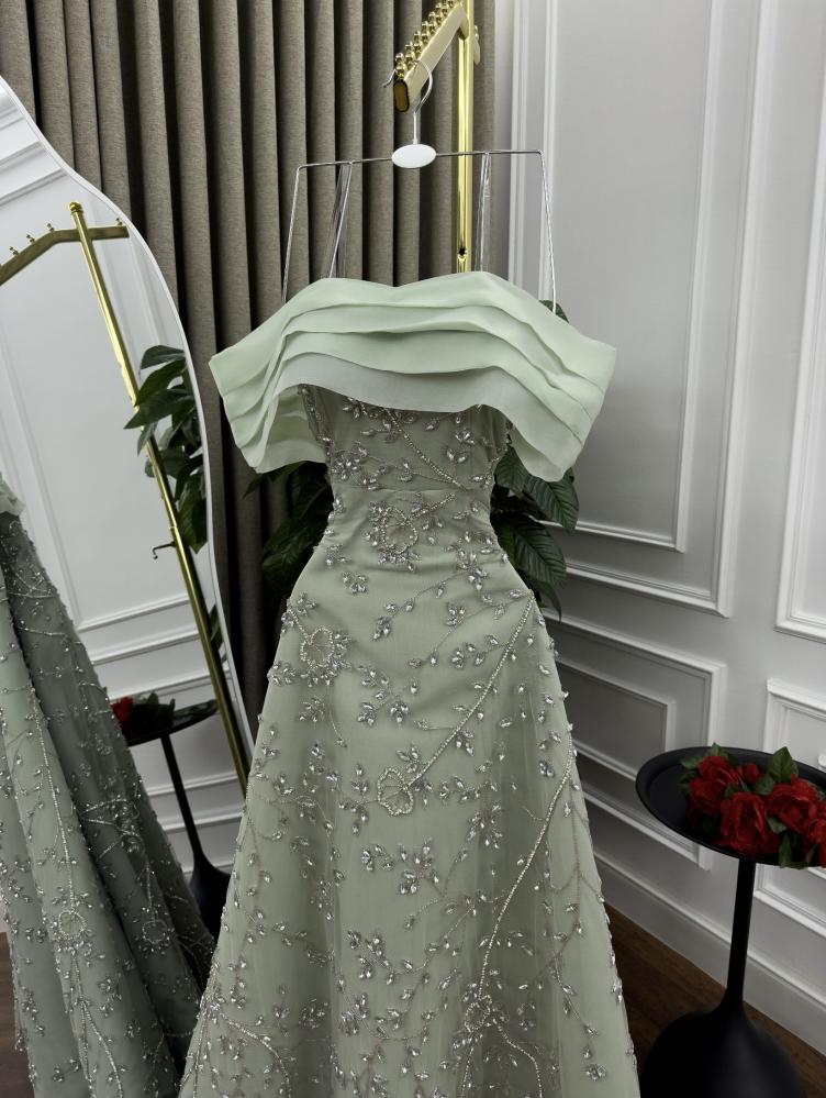 فستان سهرة فاخر بتصميم أنيق يجمع بين الرقي والفخامة ليمنحك إطلالة تخطف الأنظار في كل مناسبة. مصنوع من خامات راقية وتفاصيل دقيقة تضيف لمسة من السحر والأنوثة.