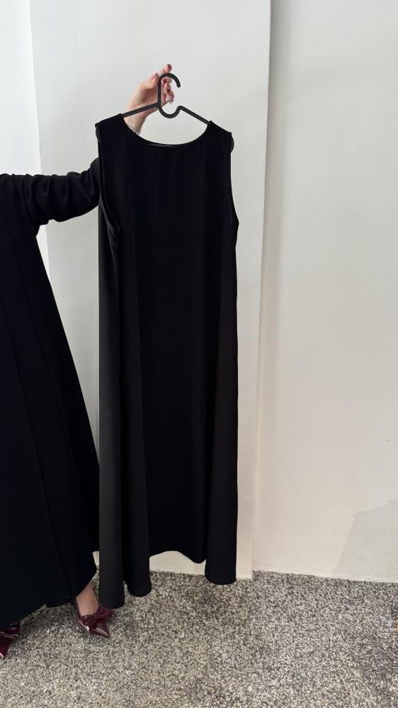 فستان عبايه بخام كريب كوري ملكي، يتميز باللون الأسود الفاحم و بخياطة دقيقة وقصه متناسقة تناسب جميع العبايات ،