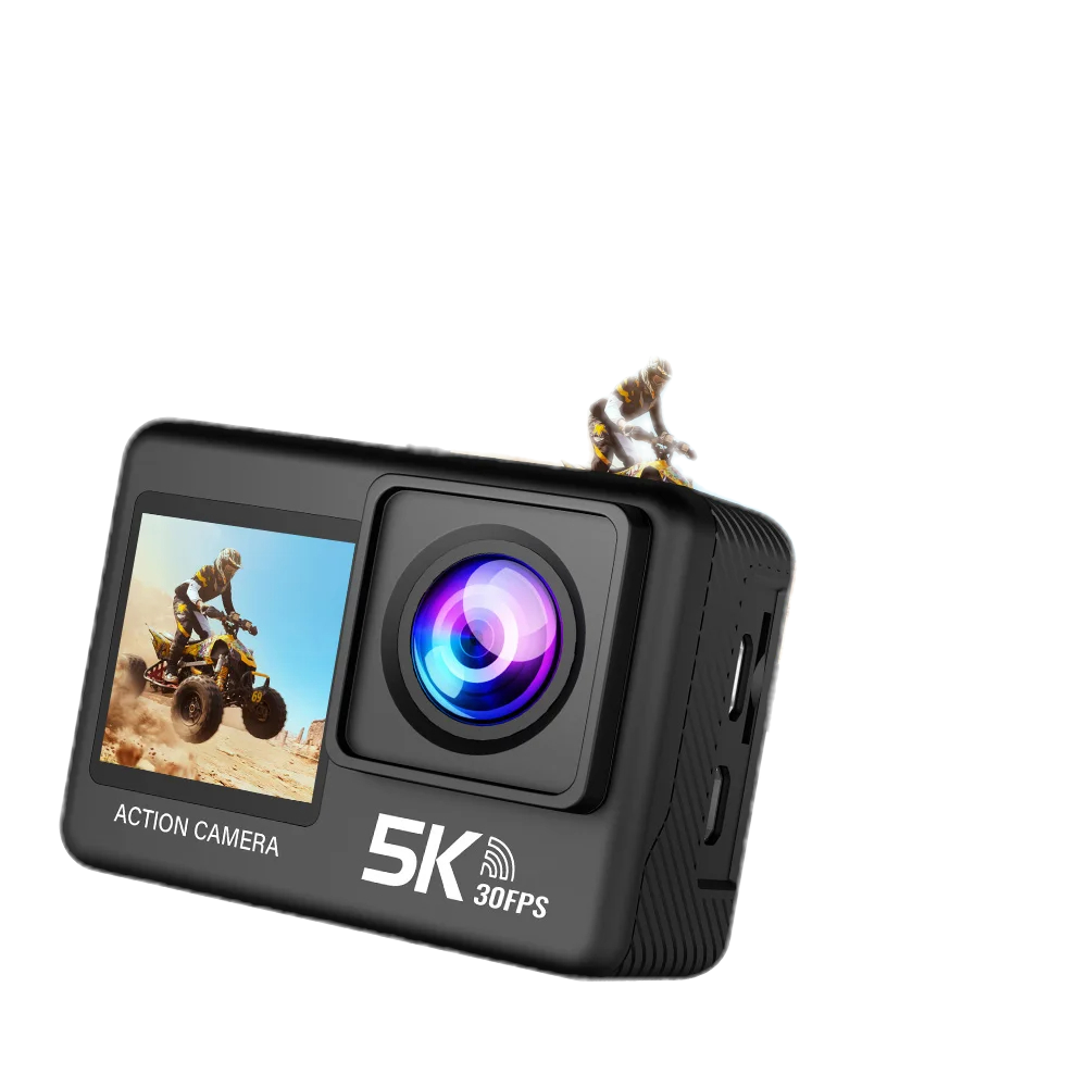 كاميرا الحركة الرياضية تدعم تسجيل فيديو بدقة 5K و4K بسرعة 60 إطارًا في الثانية، مع شاشة تعمل باللمس مقاس 2.0 بوصة. تتميز بزاوية تصوير واسعة 170 درجة، ومقاومة للماء حتى عمق 30 مترا، مما يجعلها مثالية لتسجيل الفيديوهات الرياضية أو المغامرات.