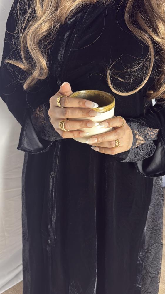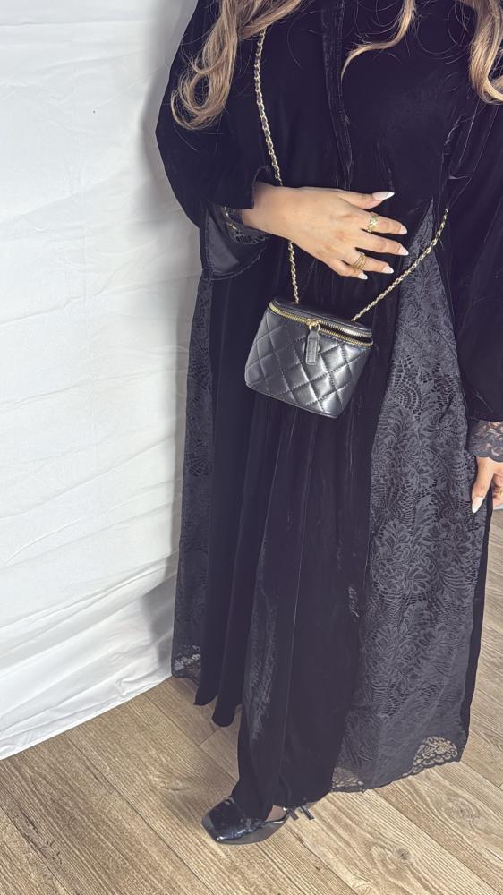 عبايه مخمل كوري مع تداخل دانتيلقصه العبايه : كلوشطرحه + طقطق🔴الرجاء عند الطلب قراءه سياسه الاستبدال والاسترجاع