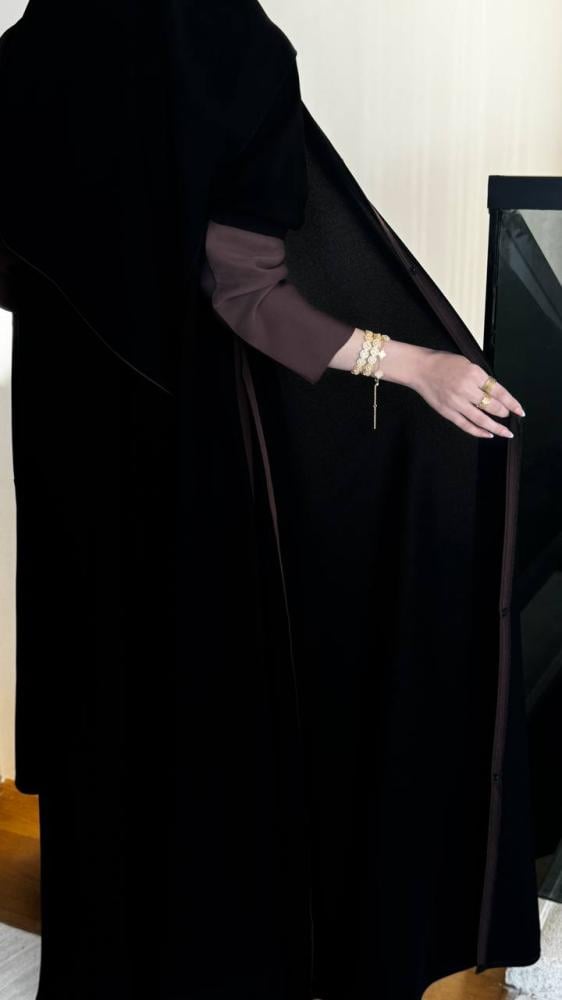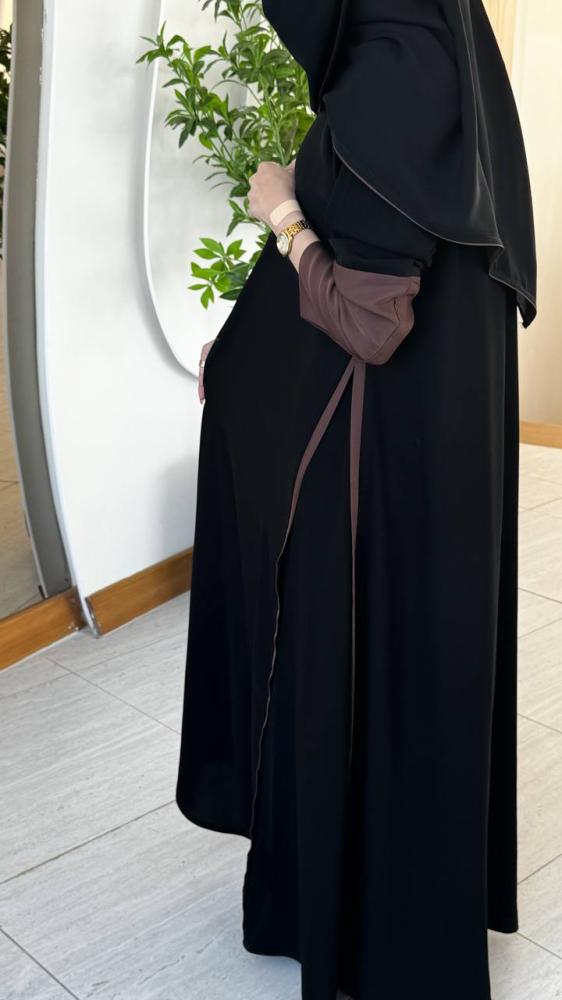 عبايه قماش كريب ملكي مع كم بني 🪡+طرحه