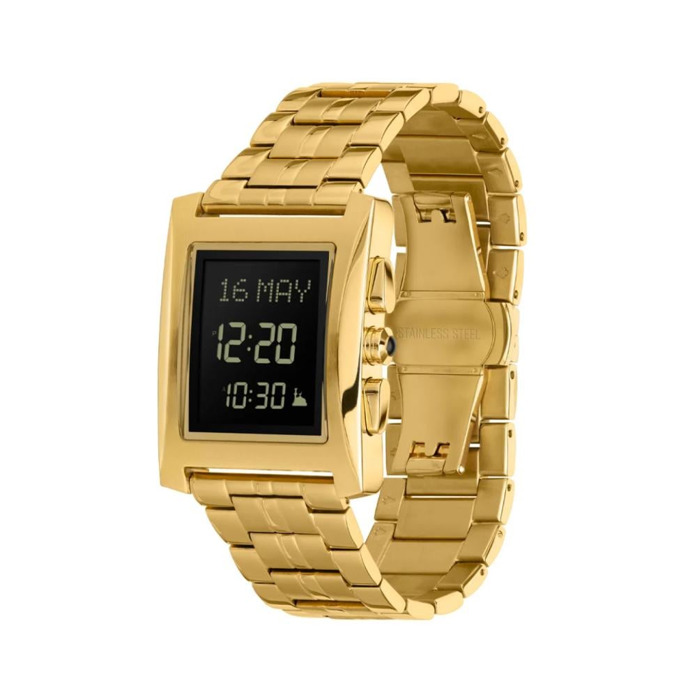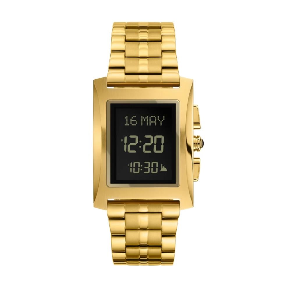 ساعة ذات هـيـكل فولاذي، مزودة بشاشة بلورية FSTN بحزام من الفولاذ المقاوم للصدأ.