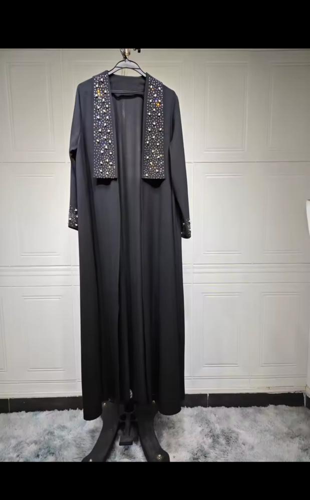 عباية باللون الأسود مطرزة بأكمام ومن الأمام باللؤلؤ