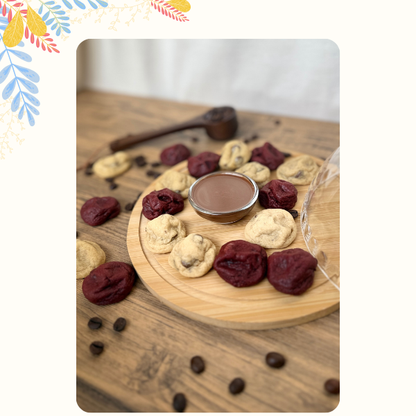 استمتع بنص كيلو من الكوكيز الكلاسيكي والرد فلفت الطازج والمخملي، محضّر بكل حب واهتمام!