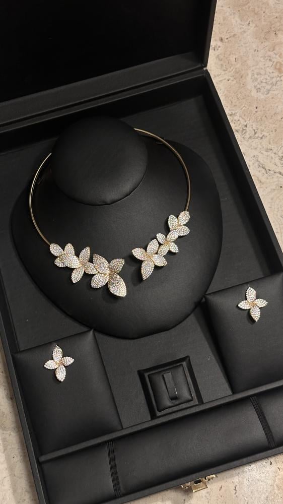 طقم الزهرة ( ذهبي ) حلق وعقد فقط
