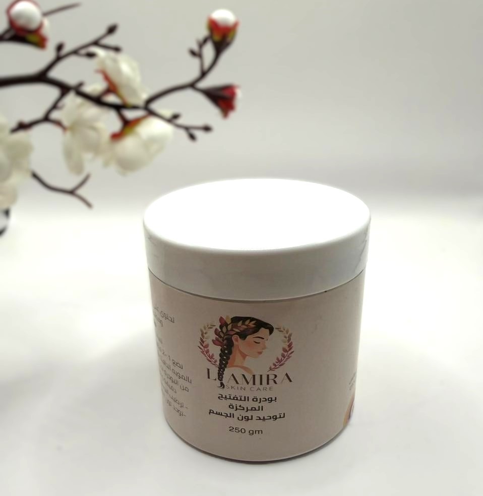 بودرة التفتيح المركزةالمكونات :مكونة من اعشاب مغربية واعشاب عضوية مفتحة ومنظفة ..توحد لون الجسم وتزيل خلايا الجلد الميتعرق السوس – للتفتيح وتقليل التص...