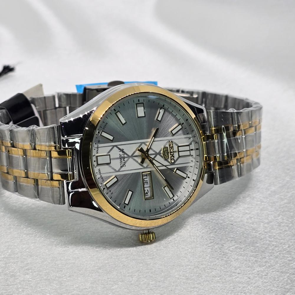 ساعة SEIKO اوتوماتيك رجالي اطار رمادي و مخطط ذهبي