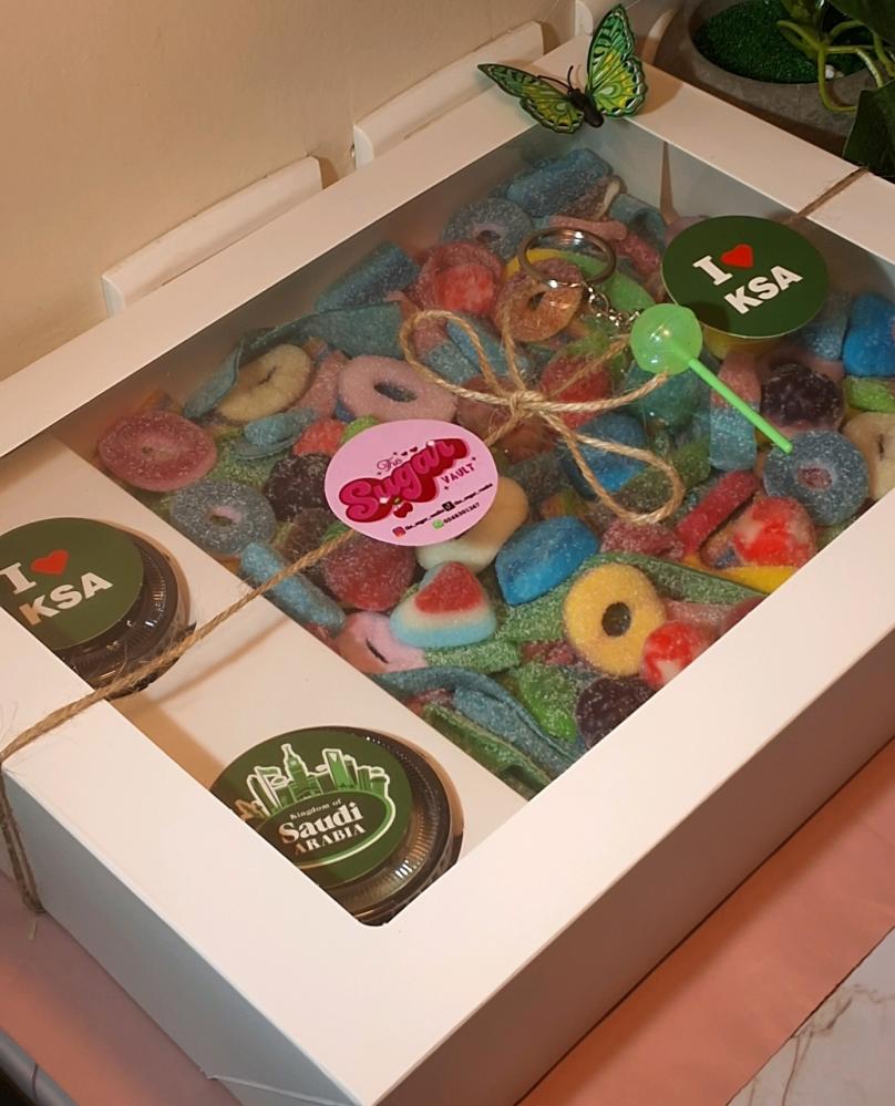 بوكس اليوم الوطني 700g حلويات مع صوص وبودره