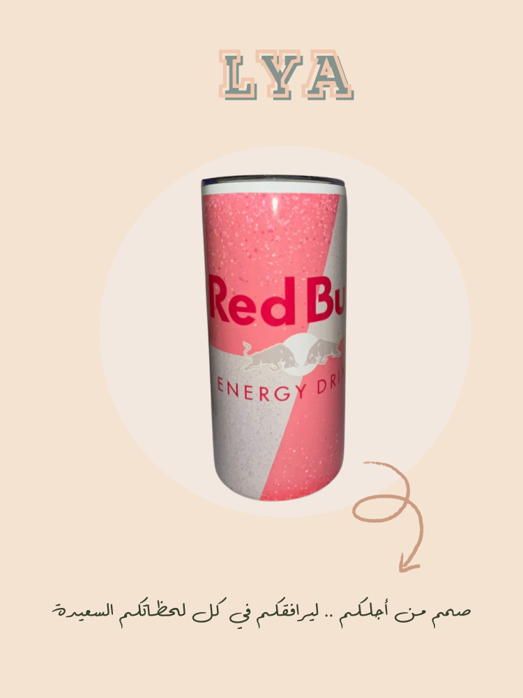 مق حراري بلون وردي كيوت وتصميم مستوحى من ريدبول، يحافظ على مشروبك حار أو بارد لساعات، مثالي للمكتب، السيارة، أو حتى هدية بنعومة.