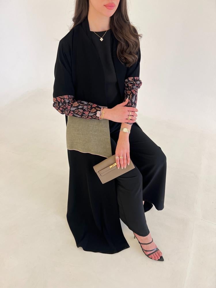 عباية صيفية قصة نص كلوش مكونة من 3 انواع من الاقمشة: