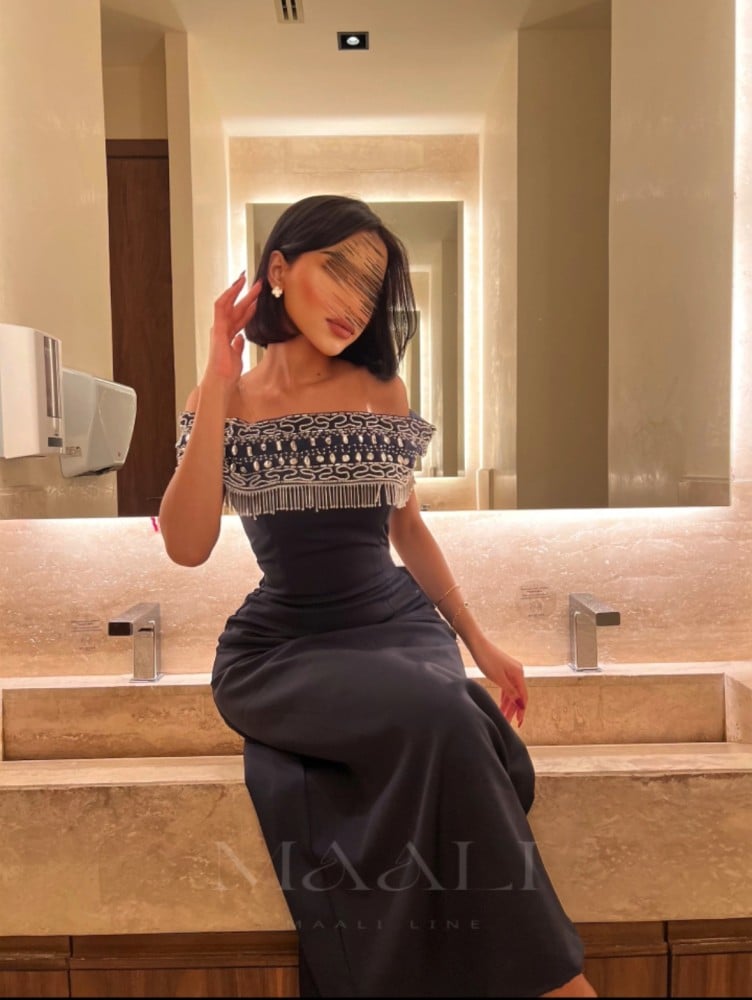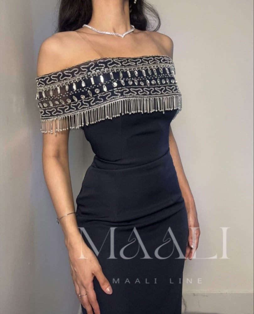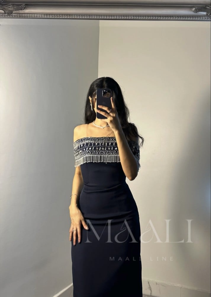 فستان كحلي طويل فخم بتفااصيل مُميزة 🦌🤍🤍🤍🤍
