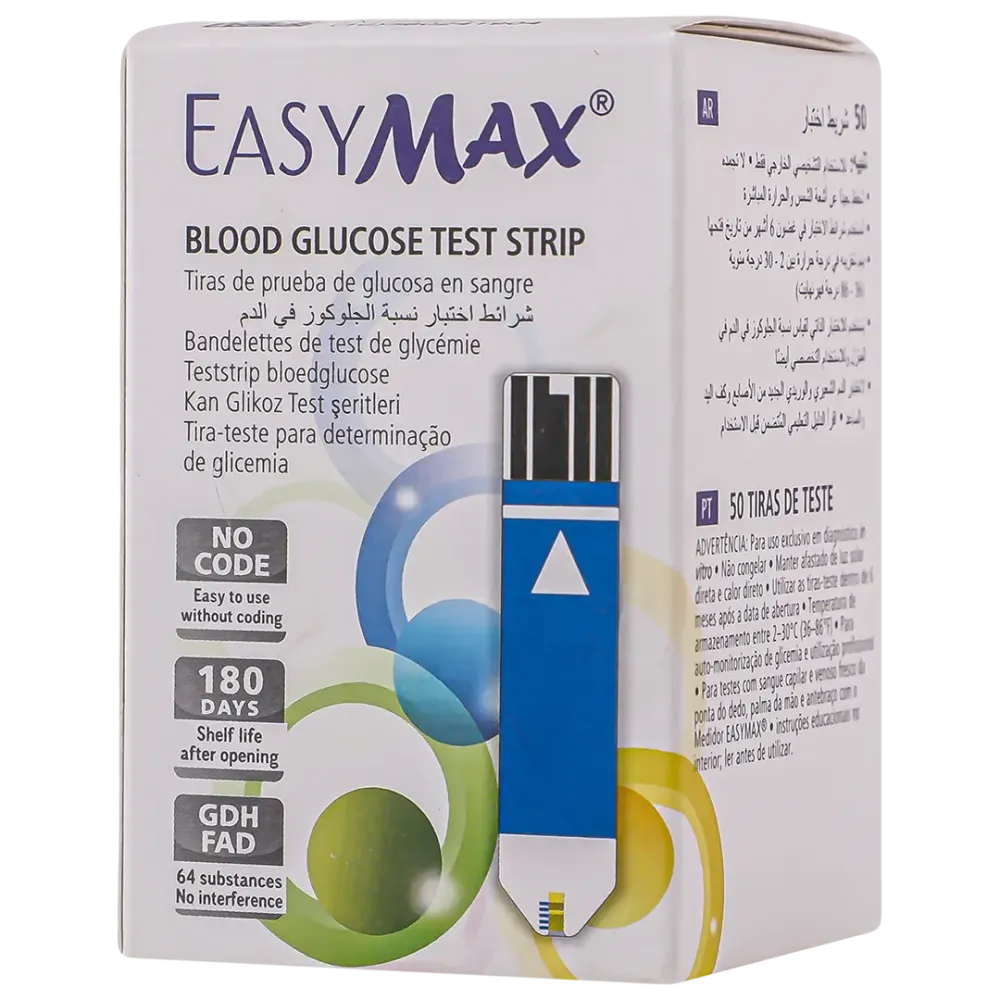 شرائط سكر ايزي ماكس EASYMAX STRIPS هي شرائط اختبار مخصصة للعمل مع جهاز EASYMAX لقياس الجلوكوز. تم تصميمها لتوفير استخدام يومي بسيط ومنظم داخل المنزل أو المنشآت الطبية، مع وضع العينة بطريقة سهلة وفق تعليمات الشركة المصنعة. تعتبر خيارًا عمليًا للمتابعة المستمرة لمستويات الجلوكوز.