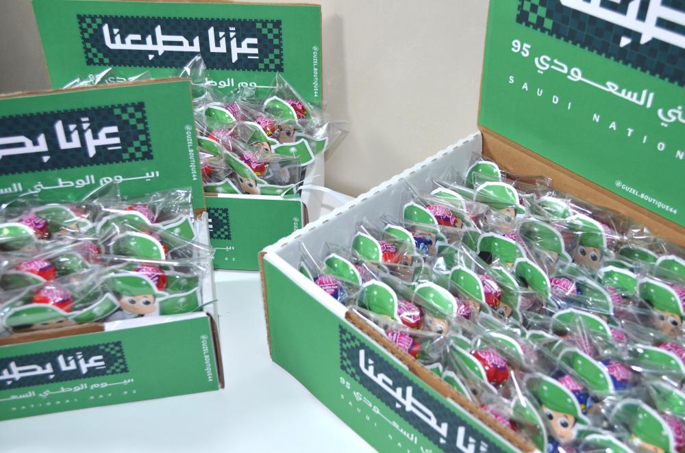مصاصات اليوم الوطني بشكل بنت او ولد الحبة بـ 3 ريال مع امكانية اضافة بوكس الحجم الوسط يحمل 20 مصاصالحجم الكبير يحمل 40 مصاص