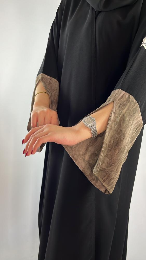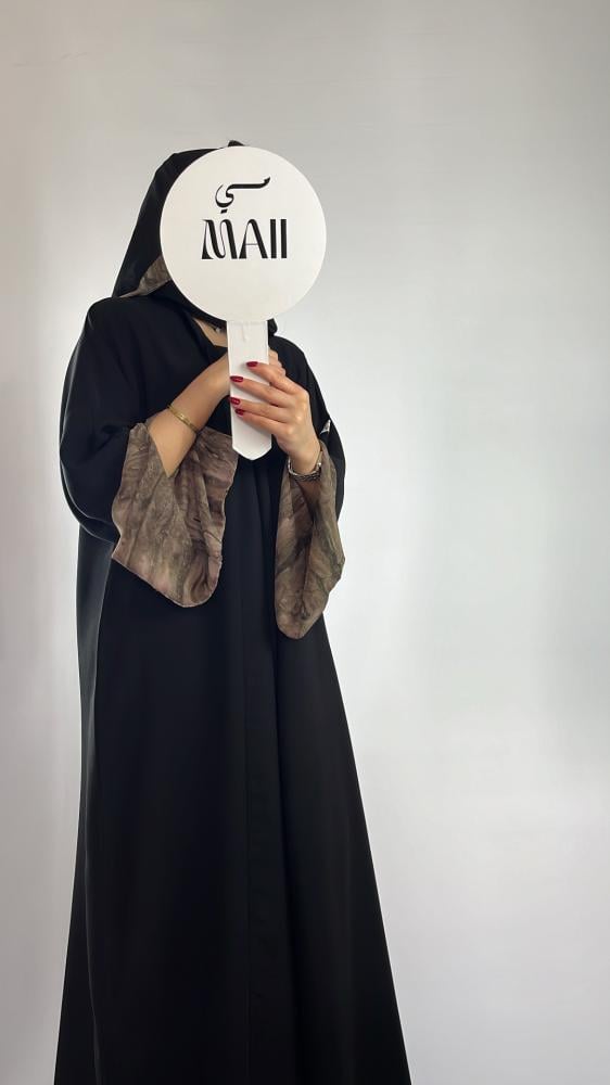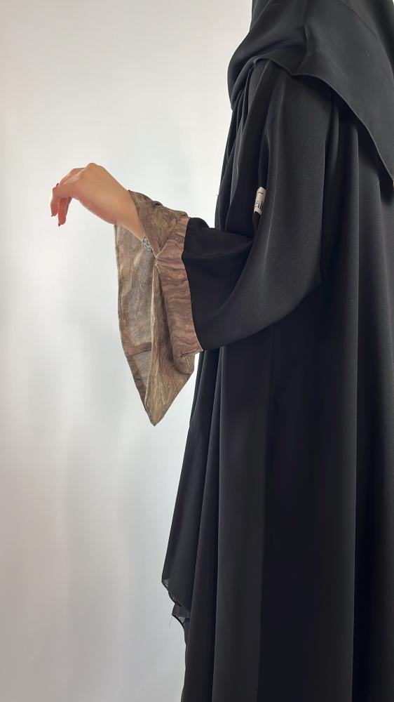عباية كريب ملكي ب اكمام شيفون مموج بني نصف كلوش