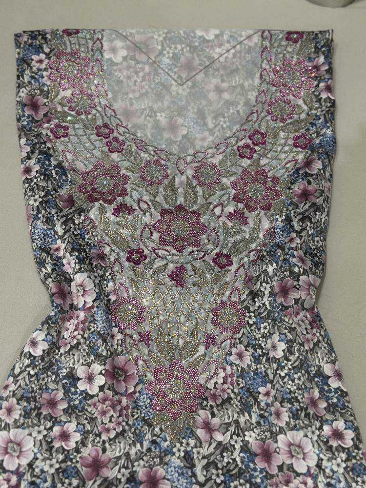 قطعة فاخرة مصنوعة من حرير أندونسي ناعم بطول ٤ أمتار، مزيّنة بتطريز أنيق وفصوص لامعة تضيف لمسة فخامة لكل إطلالة. مثالية للمناسبات والجمعات، تجمع بين الراحة والأناقة في تصميم واحد يلفت الأنظار