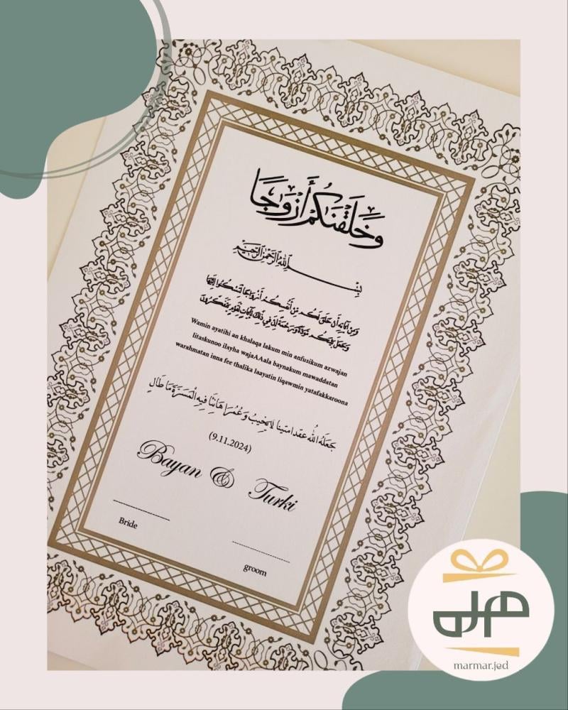 طباعة ثيم عقد القران على ورق مطفي مقمش حسب الطلب