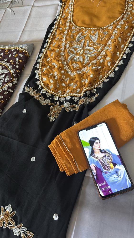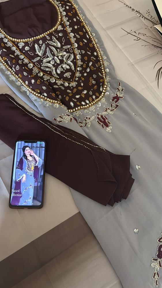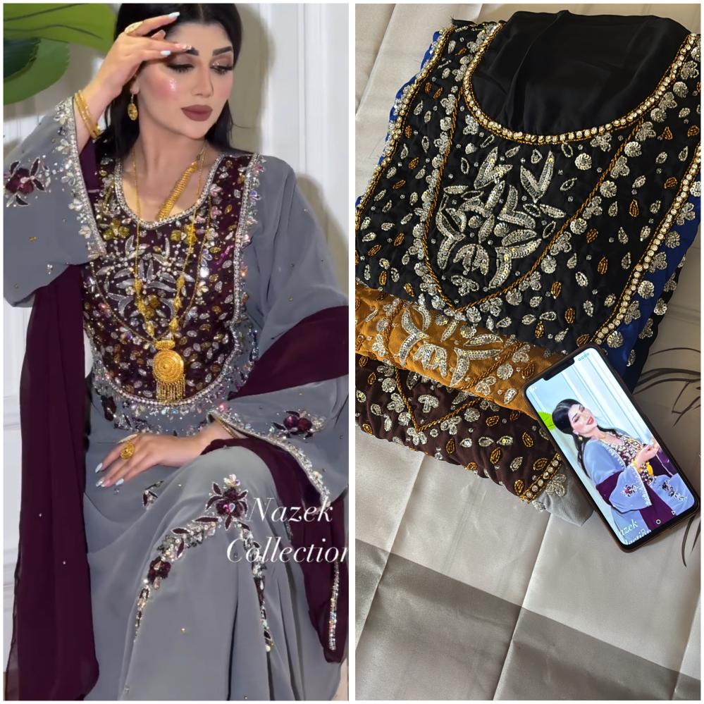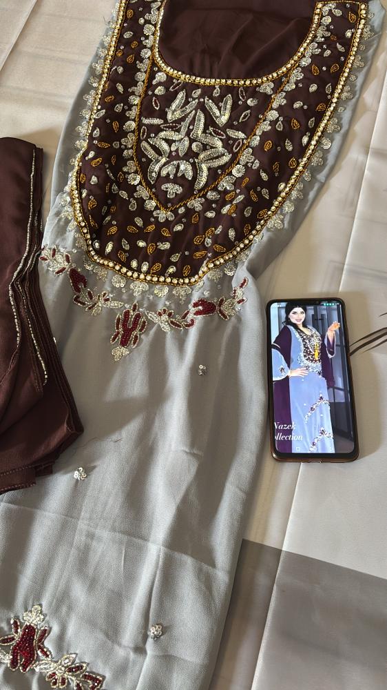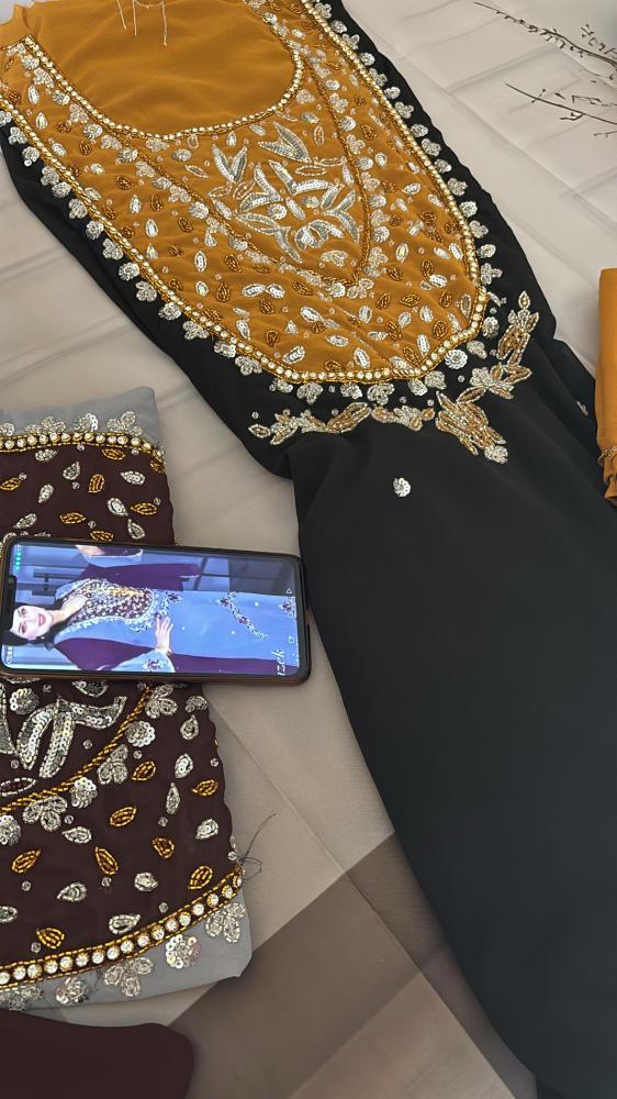 شيفون شغل يدوي (بدون بطانه) مع الشيله موديل مميز