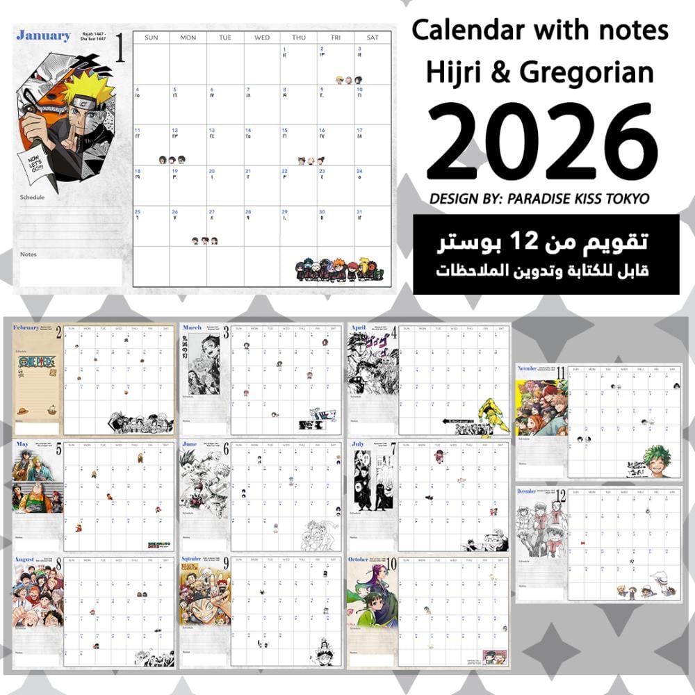 ✨ كل شهر مزين بشخصيات من انمي مختلف