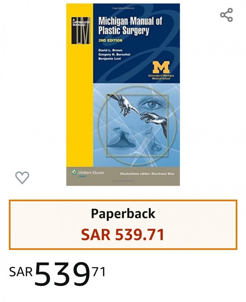 The first and only pocket-sized, practical manual on plastic surgery, The Michigan Manual of Plastic Surgery is written by residents in the University of Michigan's renowned plastic surgery training program. This multidisciplinary review features contributions from senior residents in related fields including general surgery, oral and maxillofacial surgery, otolaryngology, orthopaedics, neurosurgery, and urology. Features: easy-to-follow outline format covers the full range of clinical problems commonly encountered by plastic surgeons; core content addresses fundamental principles and techniques, skin and soft tissue lesions, head and neck, facial reconstruction, craniofacial, aesthetic surgery, breast, hand and upper extremities, trunk, lower extremities, genitalia, and burns; and interdisciplinary versatility makes the handbook ideal for medical students and surgical residents seeking clinical consultations and pre-, intra-, and postoperative care. Additionally, the review provides a quick consult for practitioners whose work interacts with plastic and reconstructive surgery, as well as for those preparing for the in-service and written board examinations. New to the Second Edition: new full-color illustrations improve visual learning and enhance retention of key concepts; carefully selected topics correspond to topics on plastic surgery in-service and specialty Board examinations; and helpful icons highlight material covered on the In-Service Board Exam.