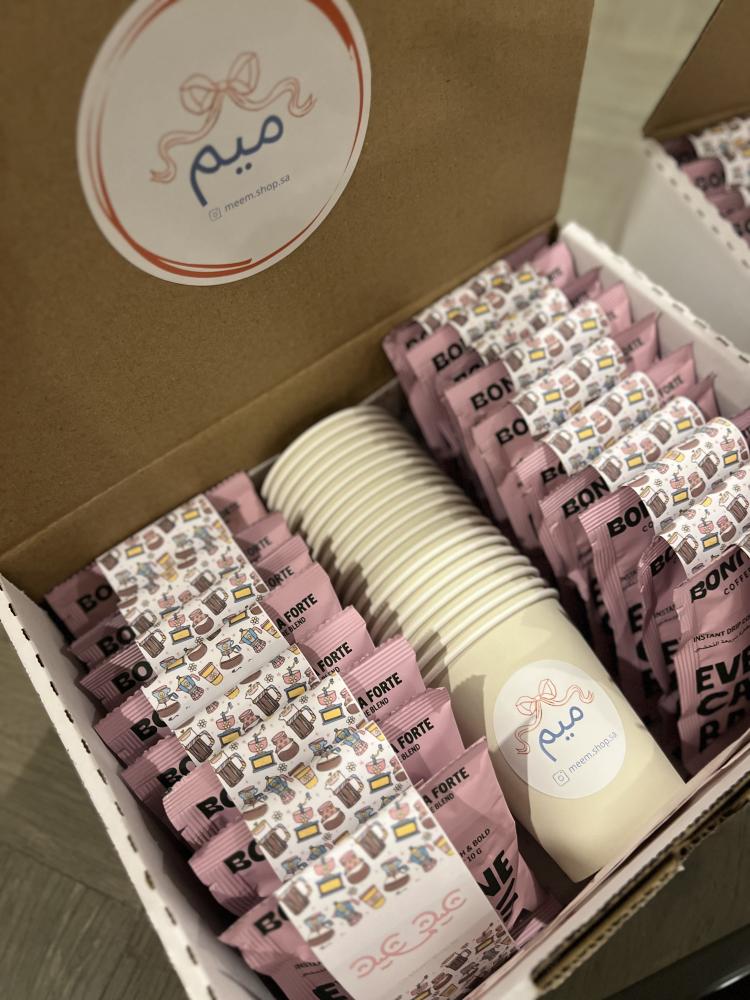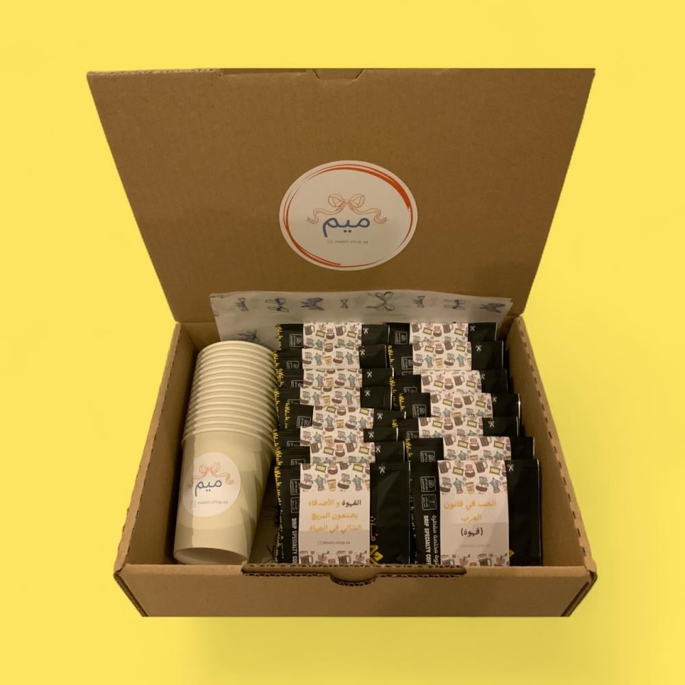 ميم جهز لكم صندوق قهوة مختصة بعبارات مميزة عن القهوة