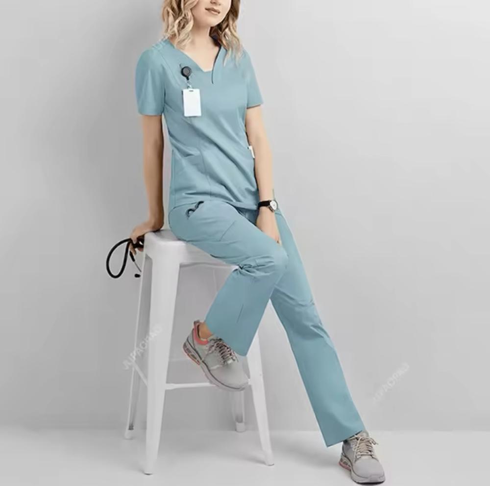 بذلات نسائية بأكمام قصيرة برقبة v ، زي تمريض لطبيب المستشفى ، زي طبي موحد للعمل ، ممرضة وصيدلية ، كاجوال ،