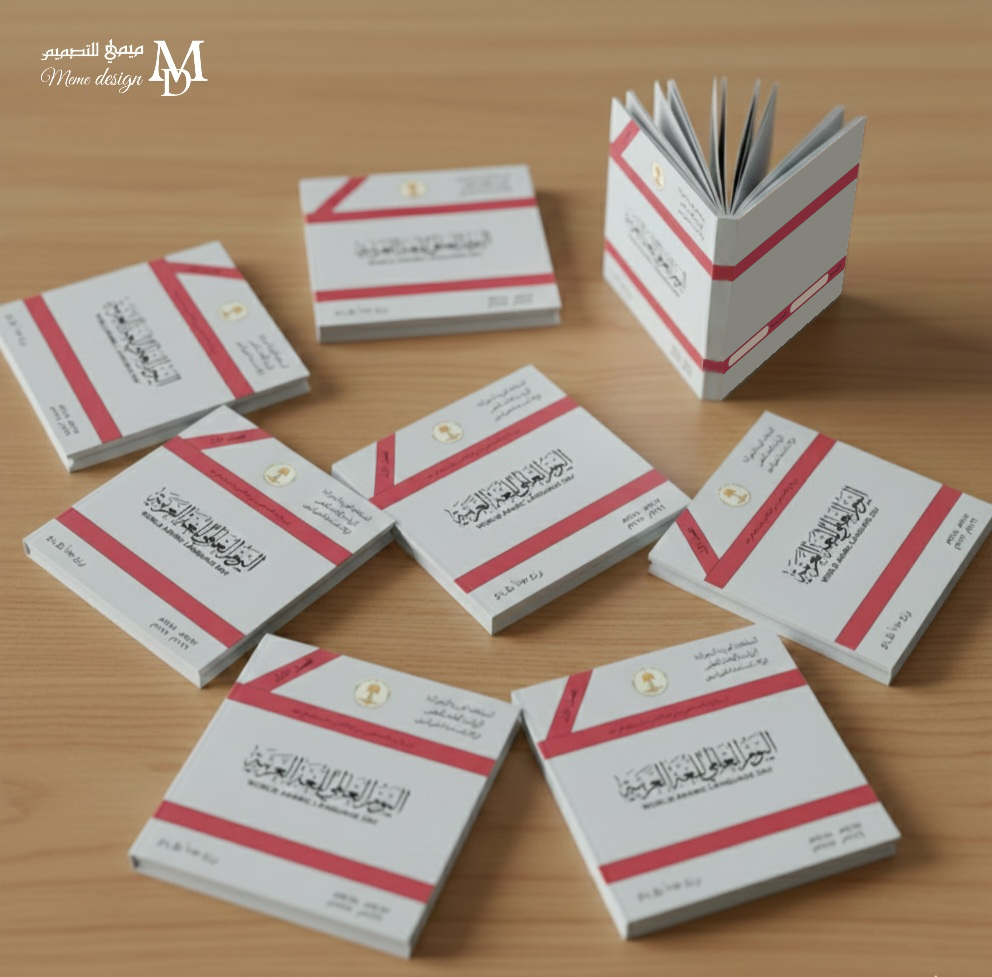 نوته مطبوعة بتصميم أنيق مستوحى من كتب زمان مع عبارة اليوم العالمي للغة العربية،