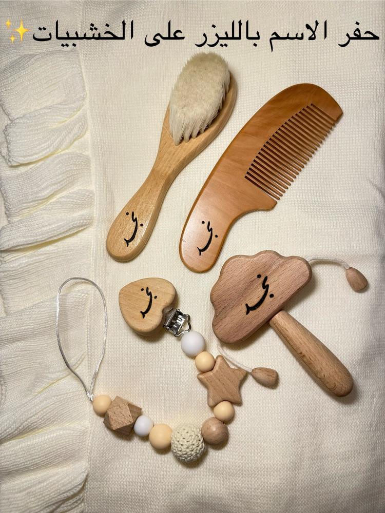•فرشاة ومشط خشبي
