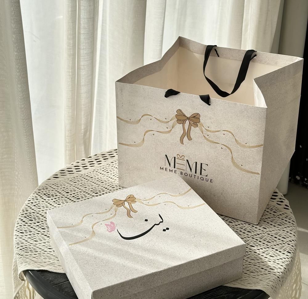 تُوضع في بوكس أنيق إضافة إلى الكيس وإضافة اسم المولوده مجاناً